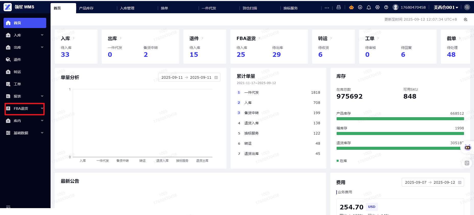 (1)进入WMS系统: 登录您的WMS管理后台,导航至FBA退货菜单。