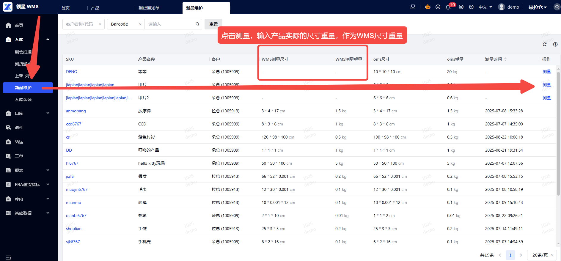 答案:首次入库的产品,没有测量填写过WMS尺寸重量,系统会自动在产品后面加上new的字样,提前标记入库单中需要新品维护的产品,帮助仓库提前规划排班,大幅提升仓库的入库效率和测量准确性。