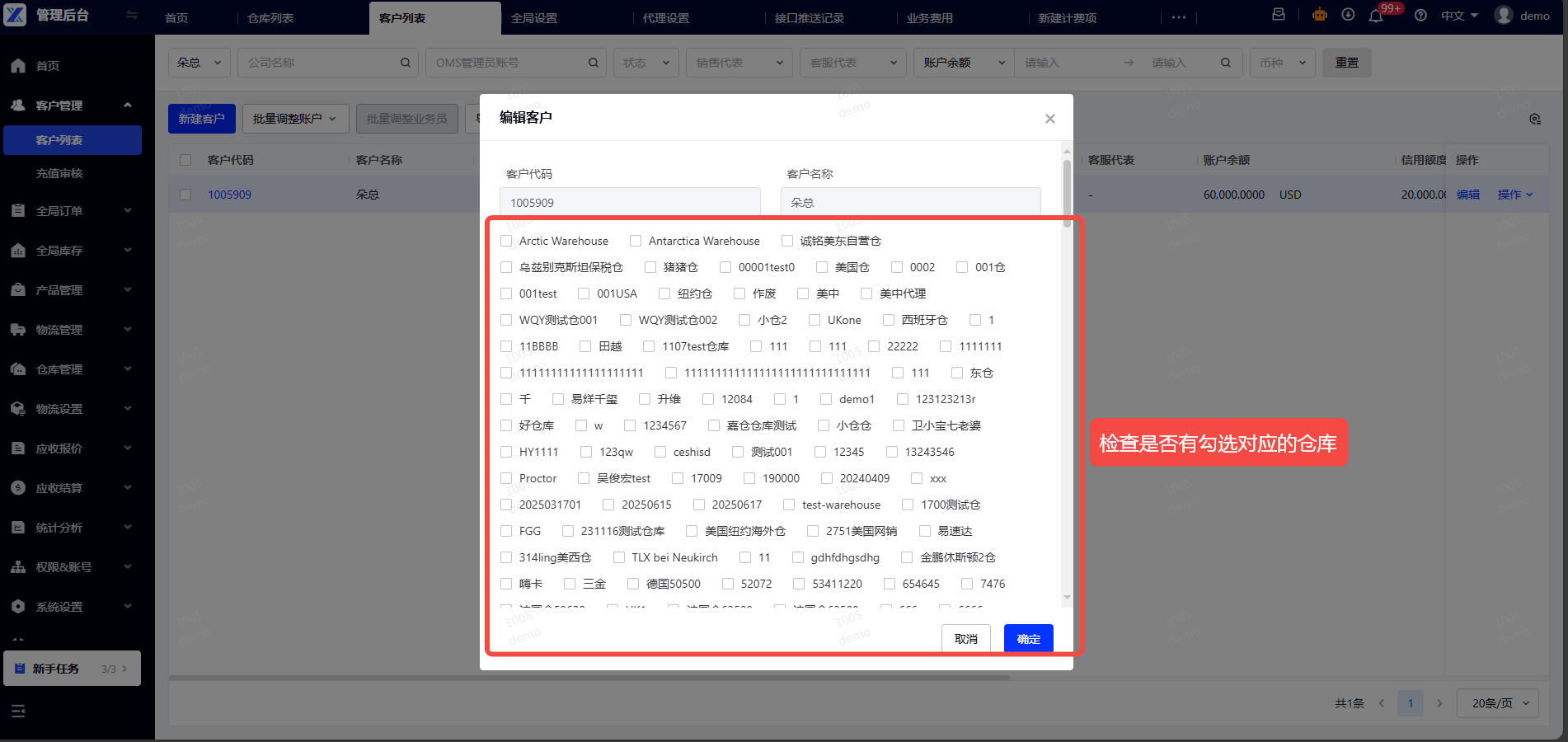 答案:需要确认是否在OMP-客户列表,将这个仓库配置为客户的可用仓。