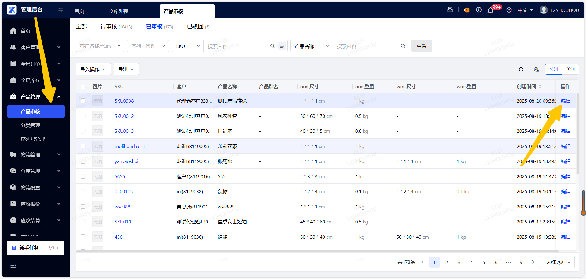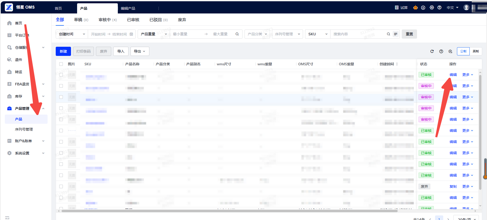 进入OMP——产品管理——产品审核——已审核 ,可以针对已审核的产品进行绑定包材,点击编辑;