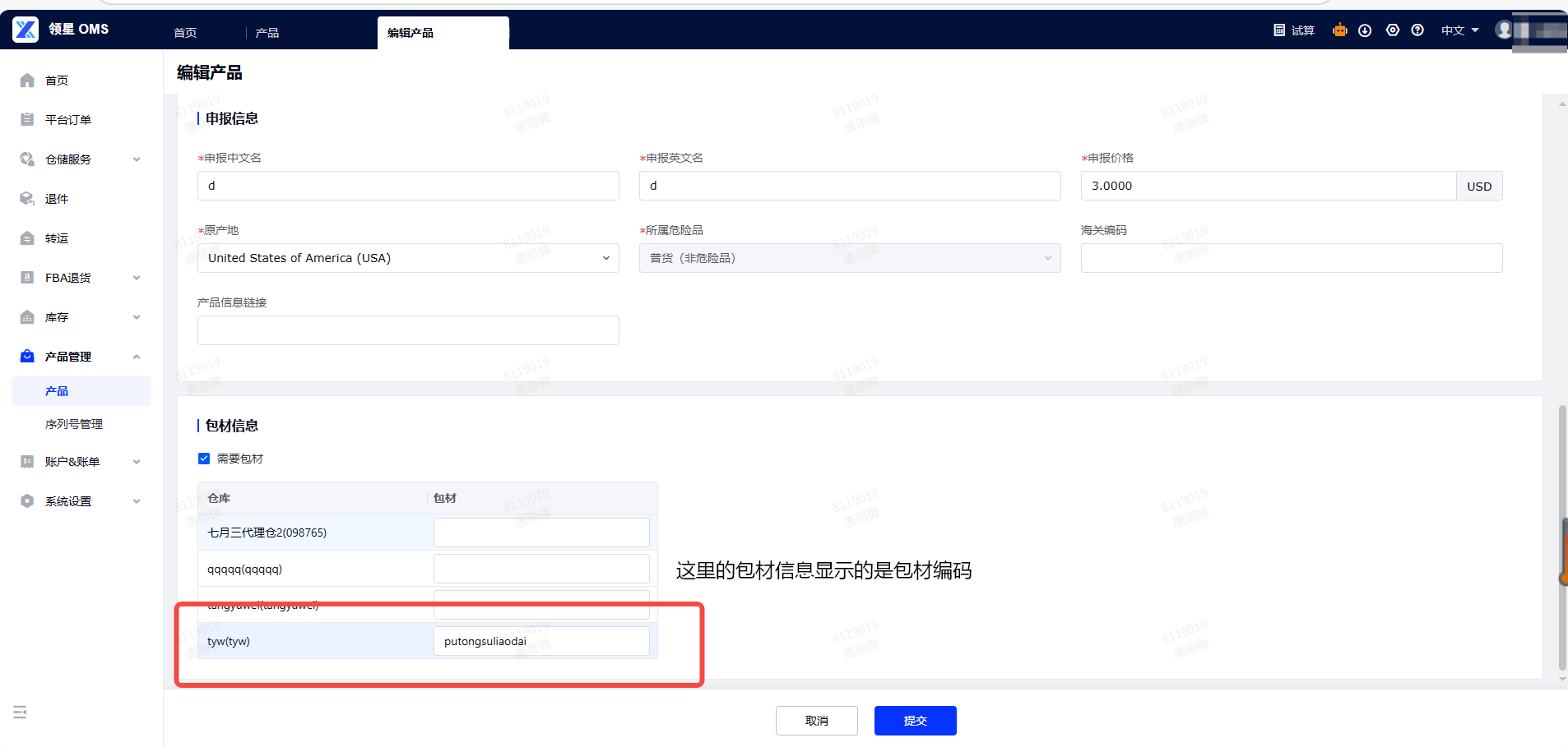 进入OMS——产品管理——产品,点击编辑进入编辑产品的页面
