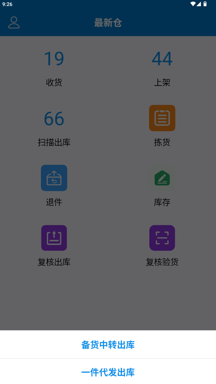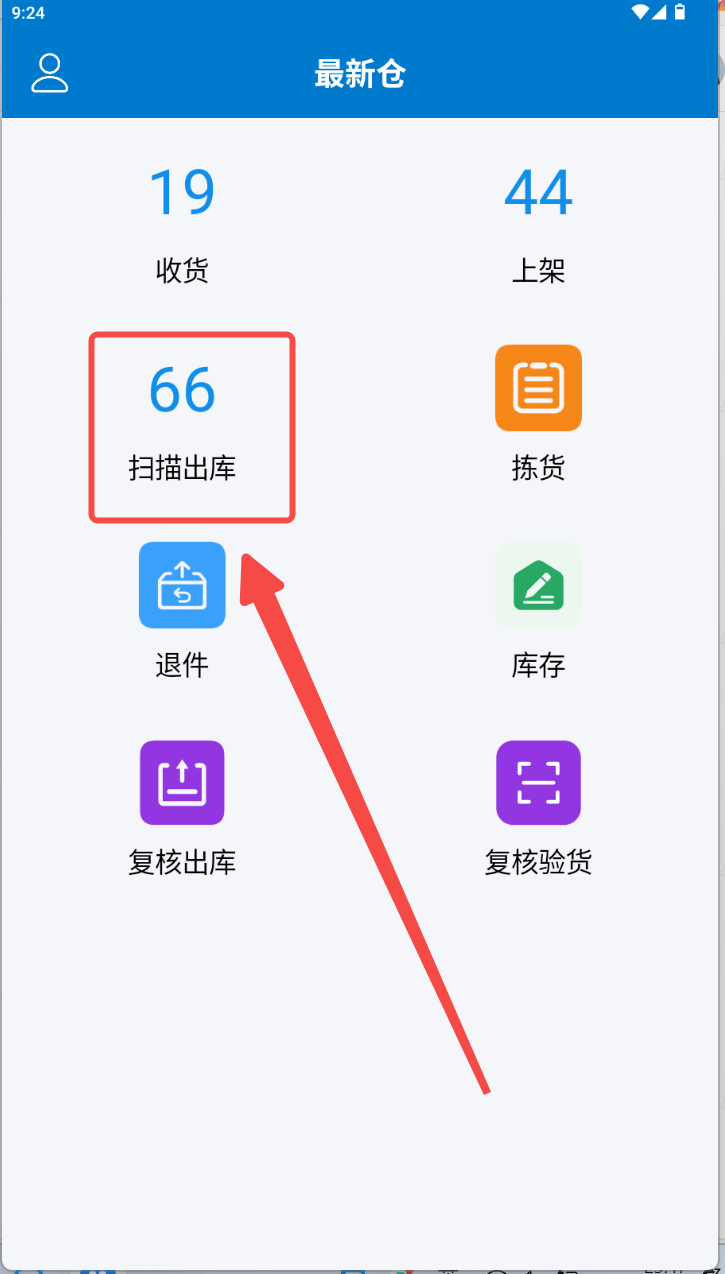 (1)打开PDA:选择扫描出库