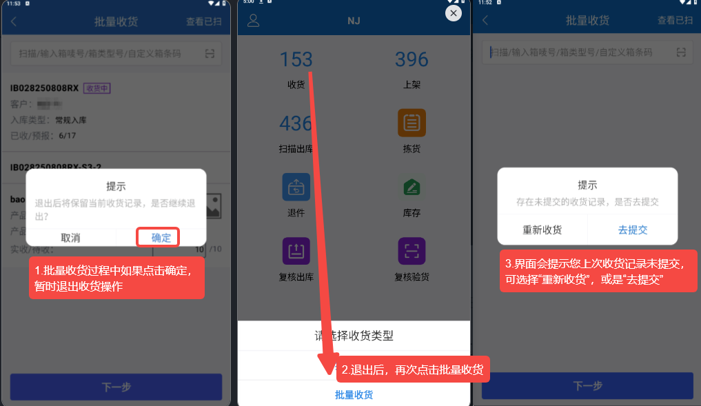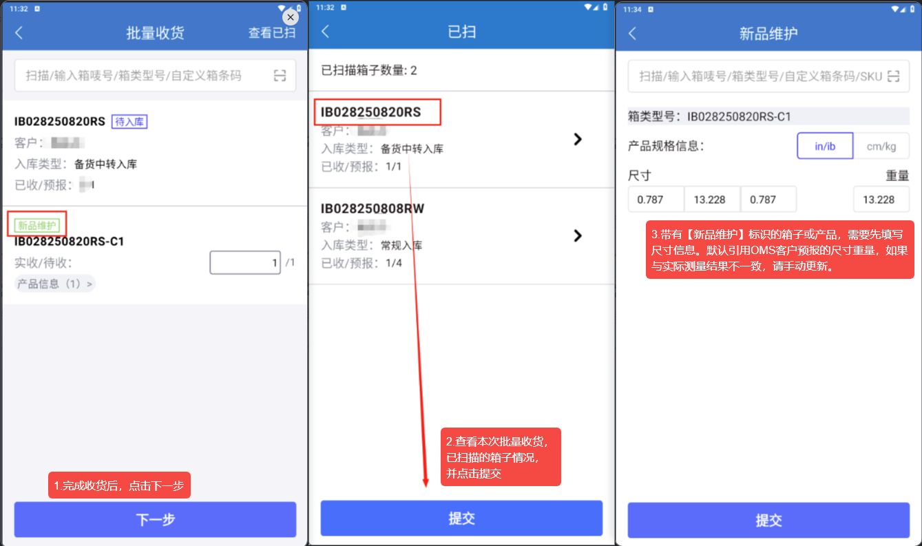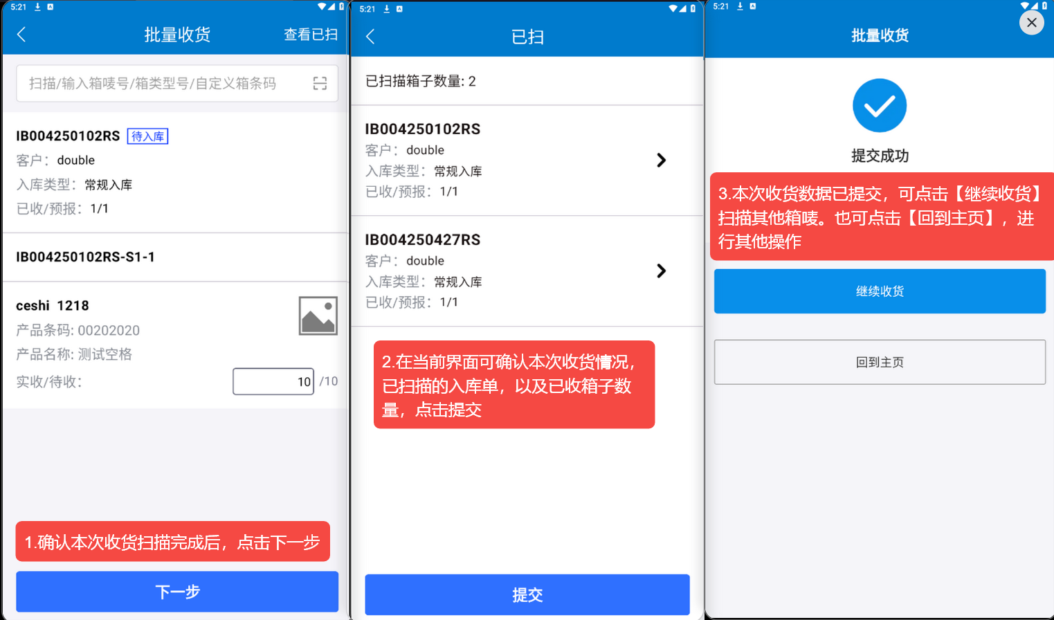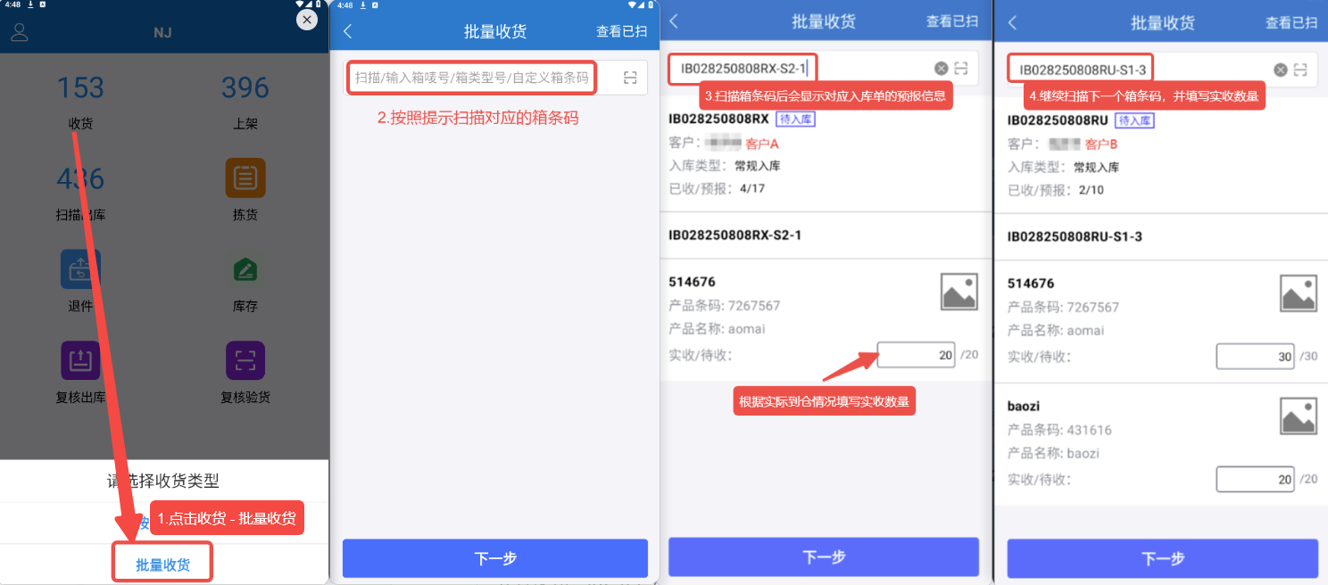 定义:批量入库指按照箱维度进行扫描收货,区别于按单收货以订单维度扫描收货。