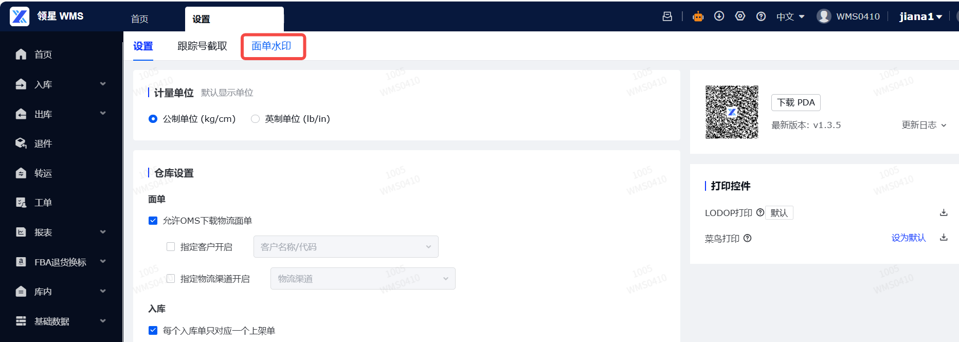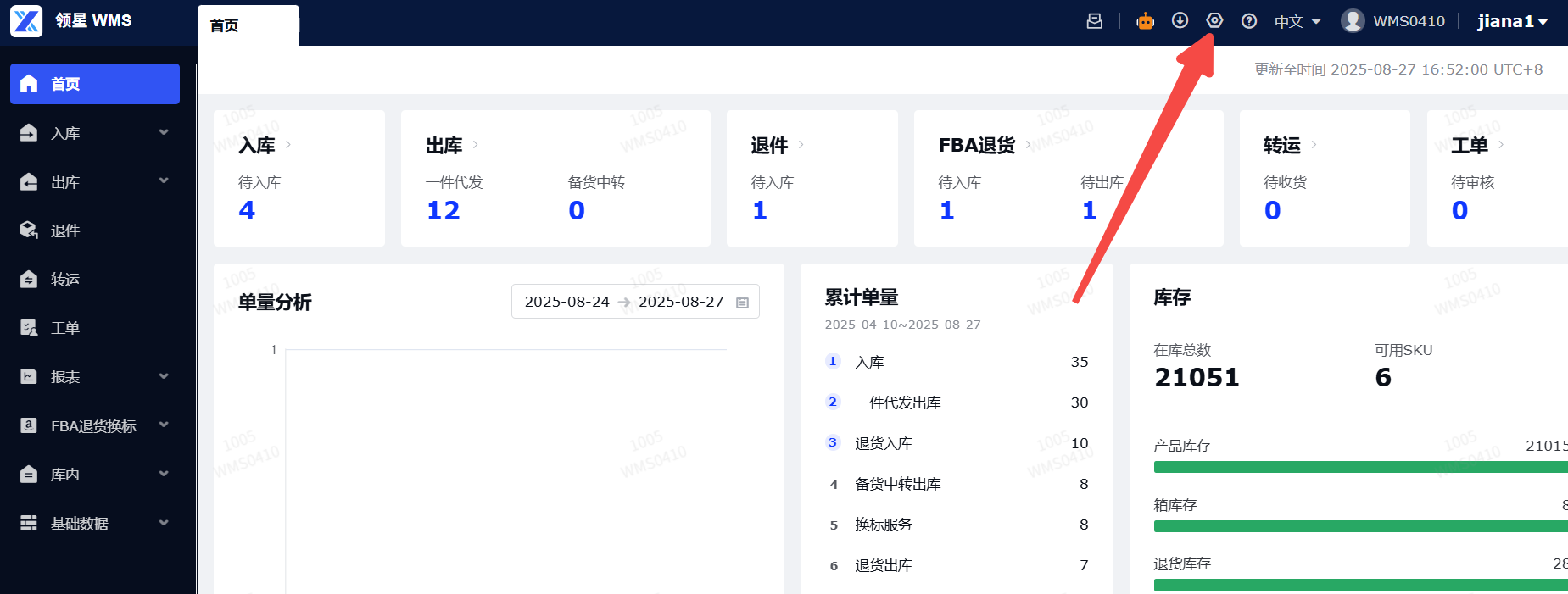 (1)进入WMS系统:登录您的WMS管理后台,导航至设置菜单。
