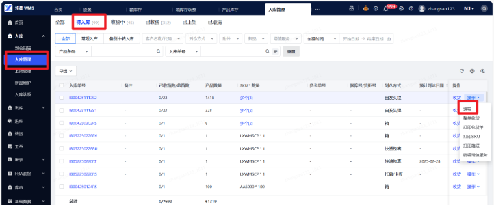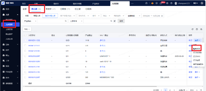 (1)进入WMS系统:登录您的WMS管理后台,导航至入库菜单。