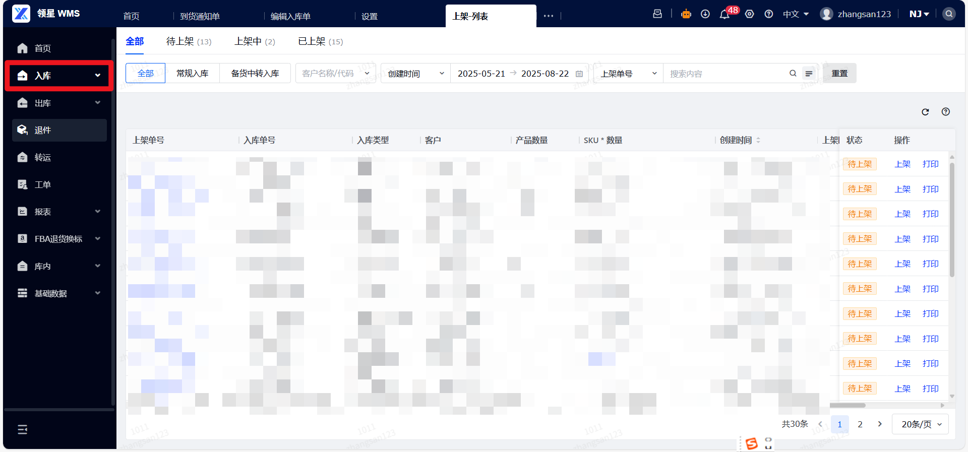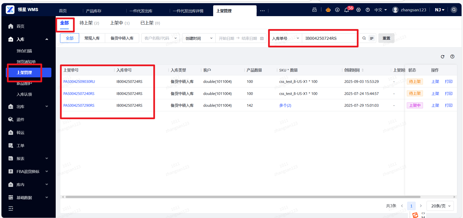 ● 全部:展示所有状态的上架单。(用于筛选查询)。