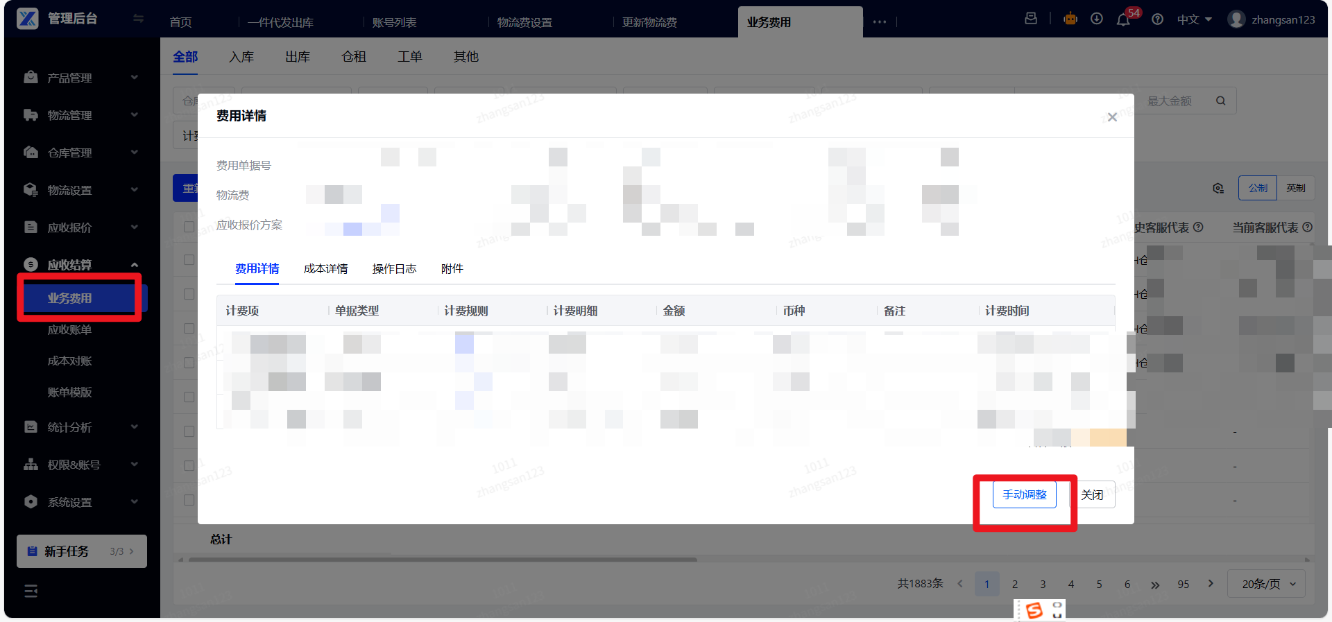 答案:收多少就需要上架多少;建议操作上架之后,再在WMS调整库存扣减库存,多产生的费用也需要手动调整。库存调整和手动调整费用如下图。