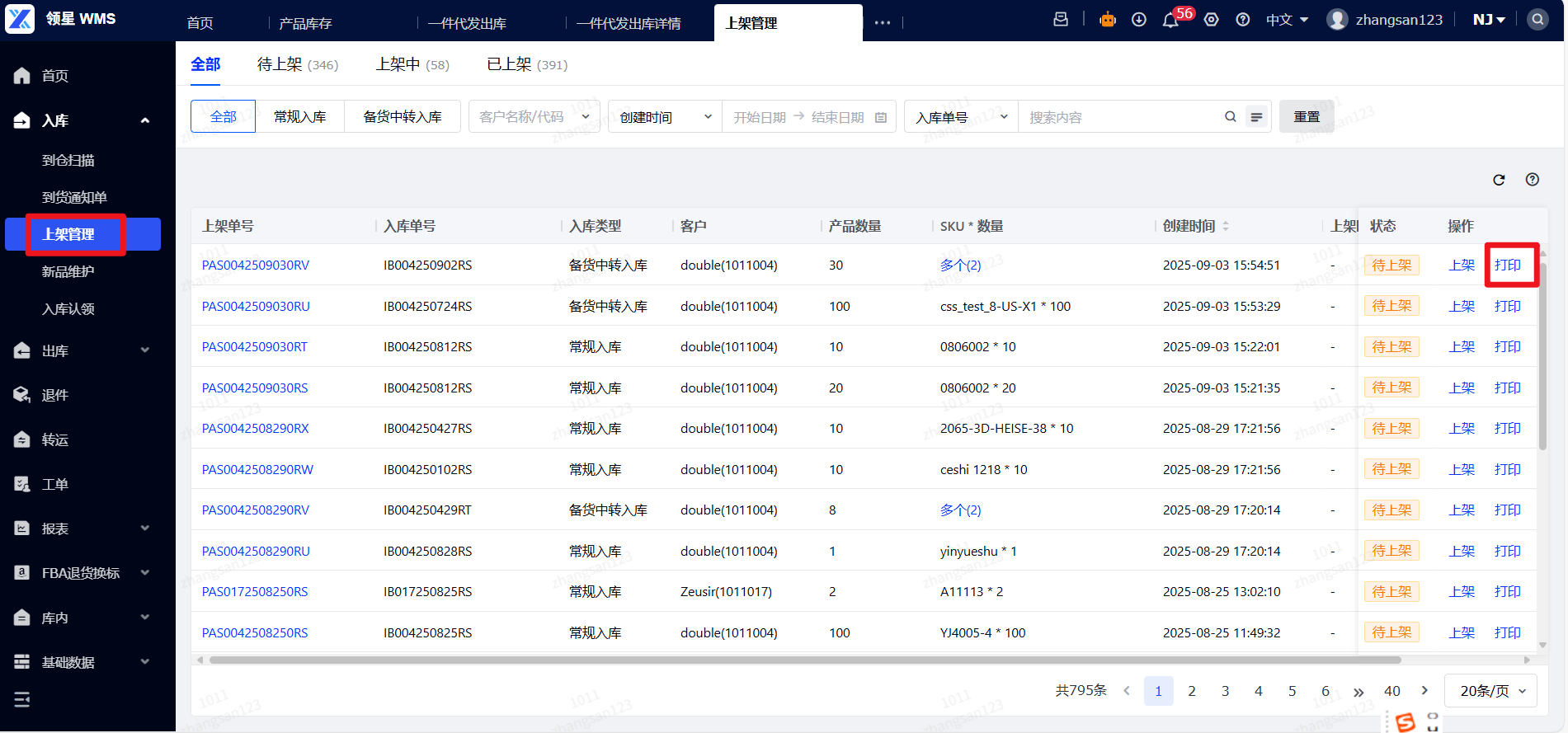 Q8:怎么打印上架单?
