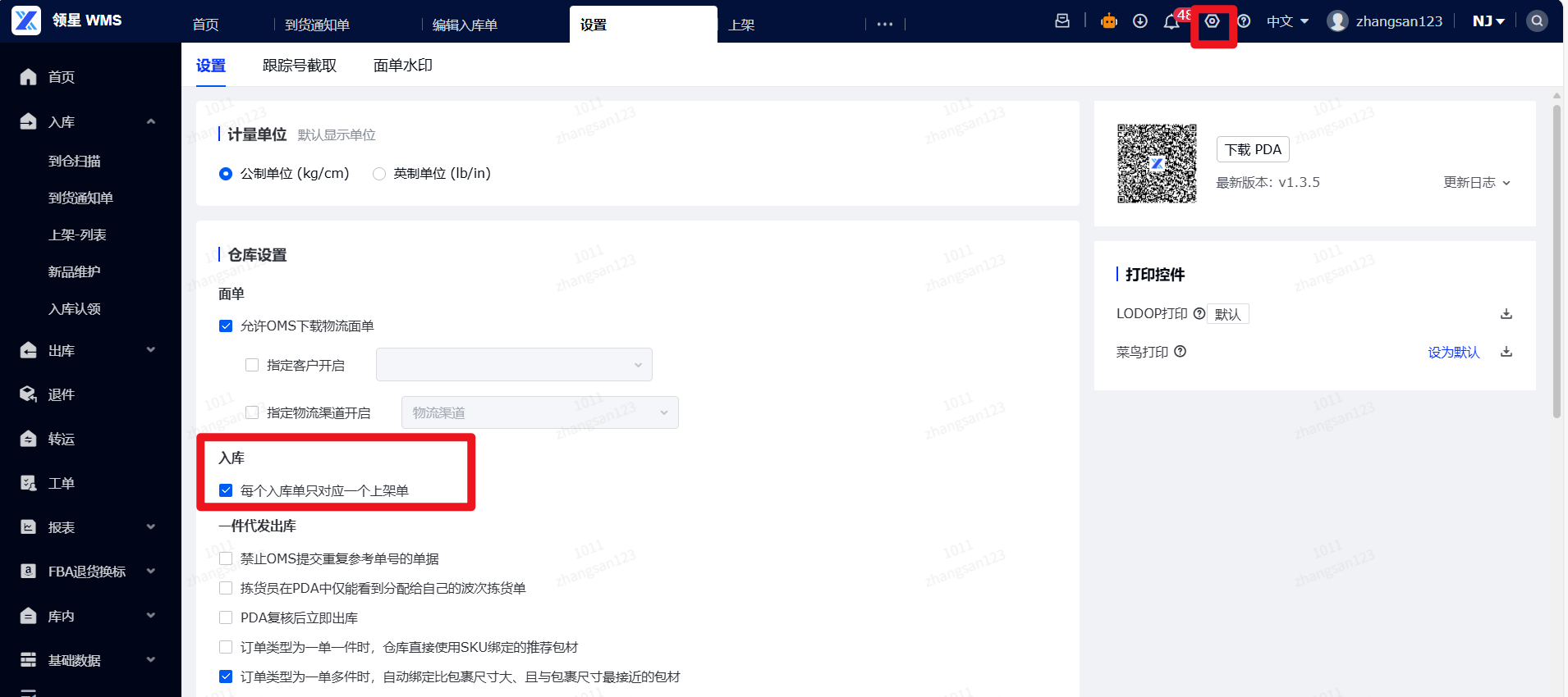 (1)进入WMS系统:登录您的WMS管理后台,导航至入库菜单。