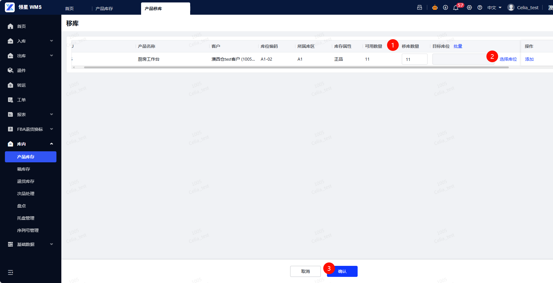 第二步,输入【移库数量】,选择目标库位,点击【确认】,即完成移库操作,系统会生成库位变动的流水记录。