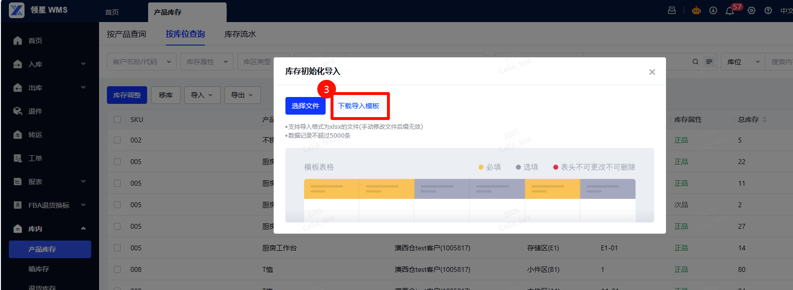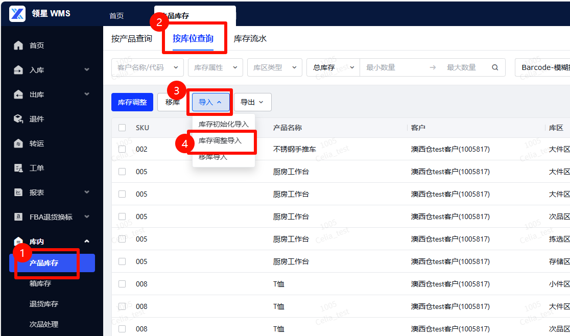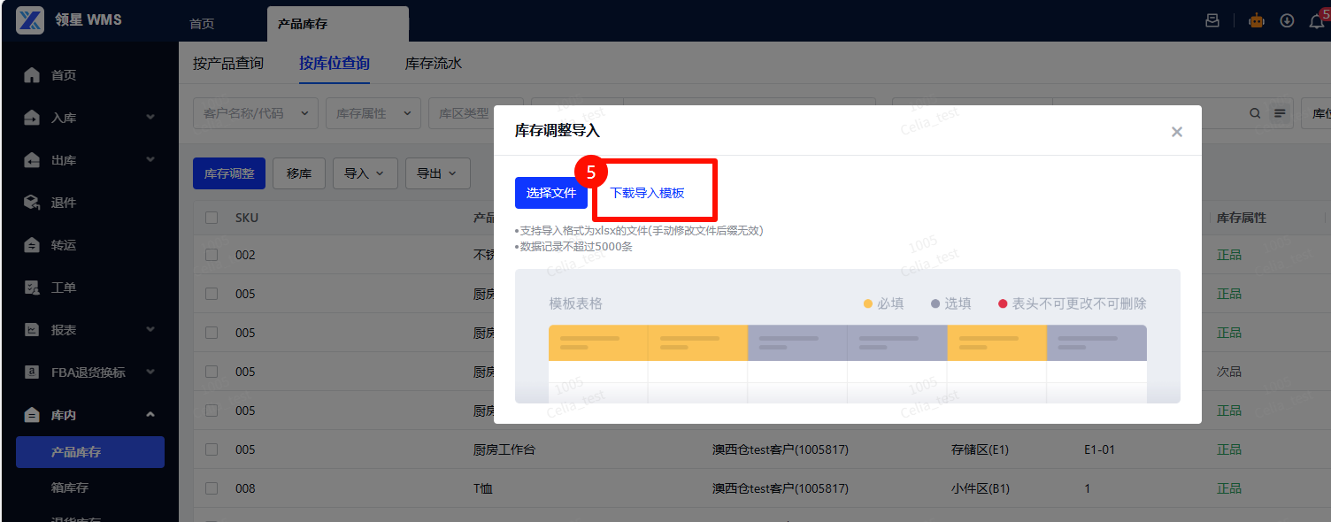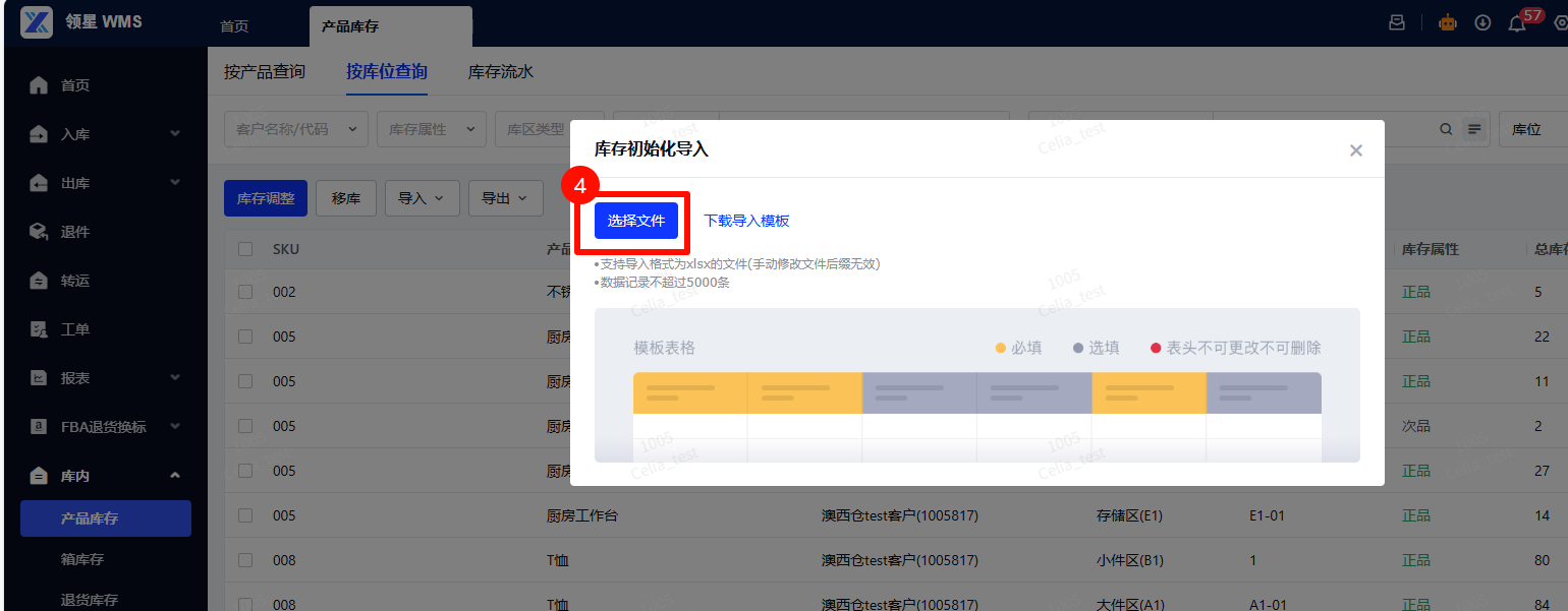 路径:【按库位查询】-【导入】-【库存调整导入】
