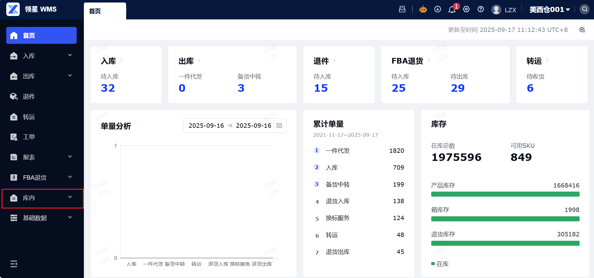 (1)进入WMS端口:登录您的WMS端口,并进入到对应的仓库,导航至库内 。