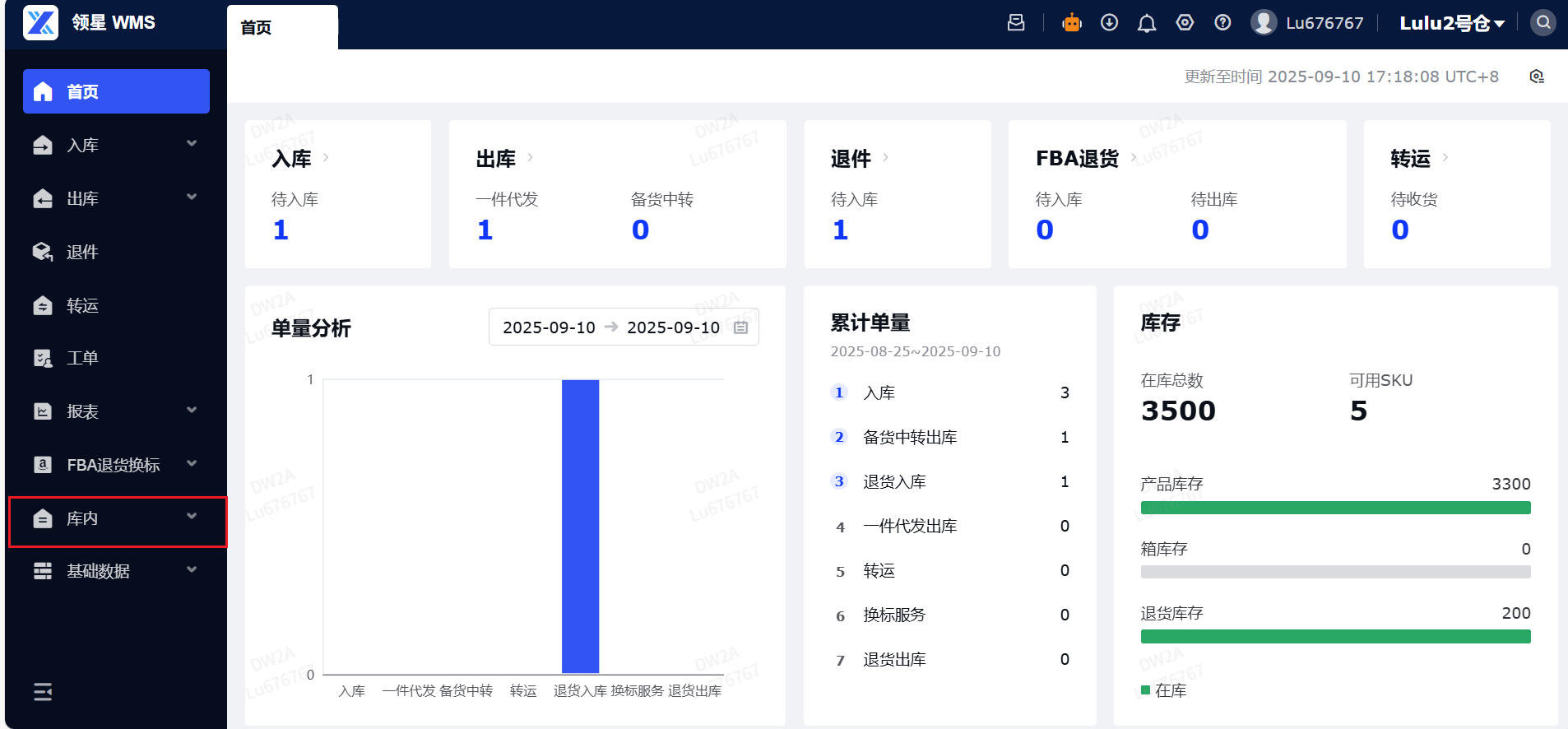 (1)进入WMS端口:登录您的WMS端口,导航至库内 。