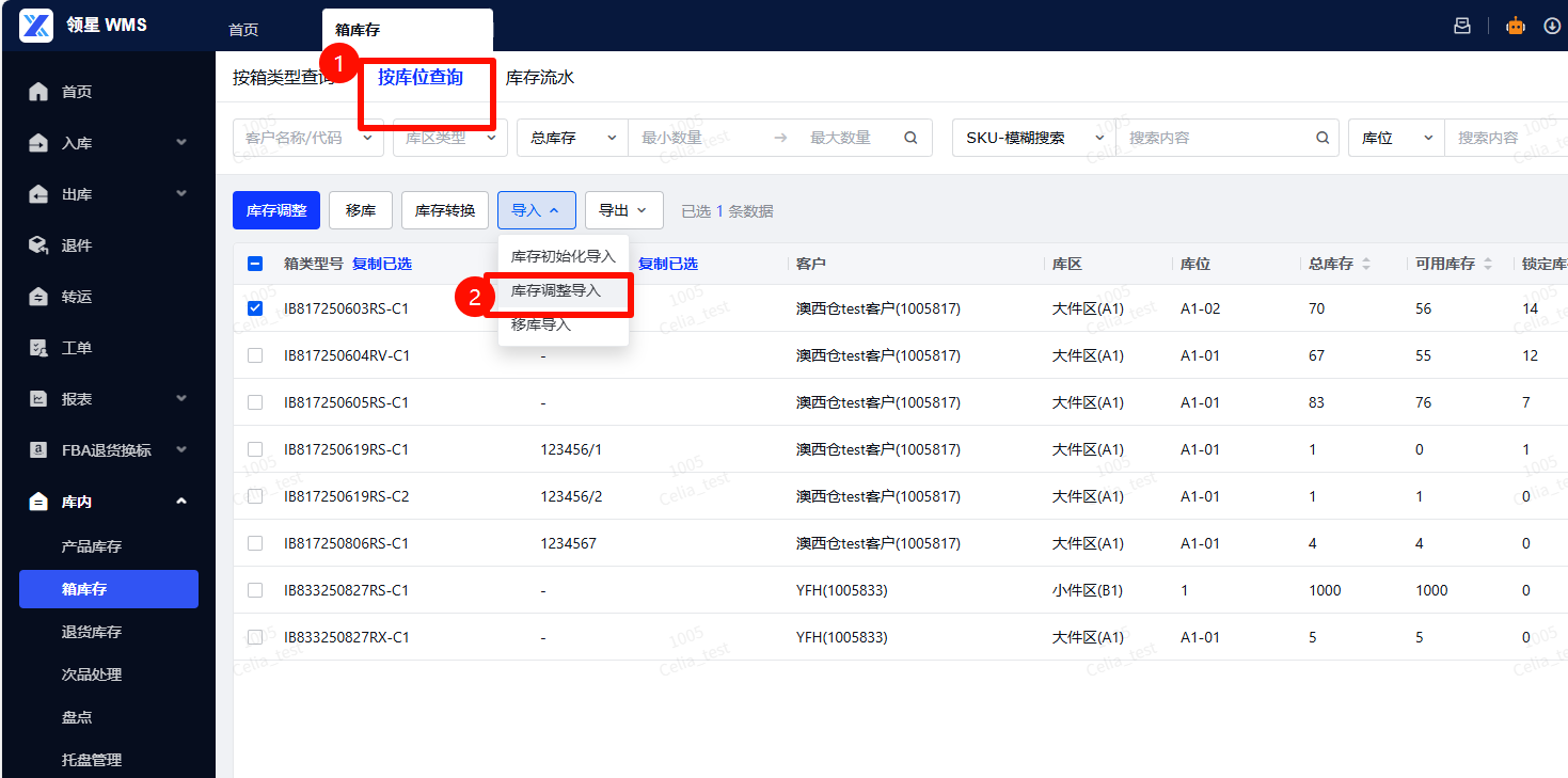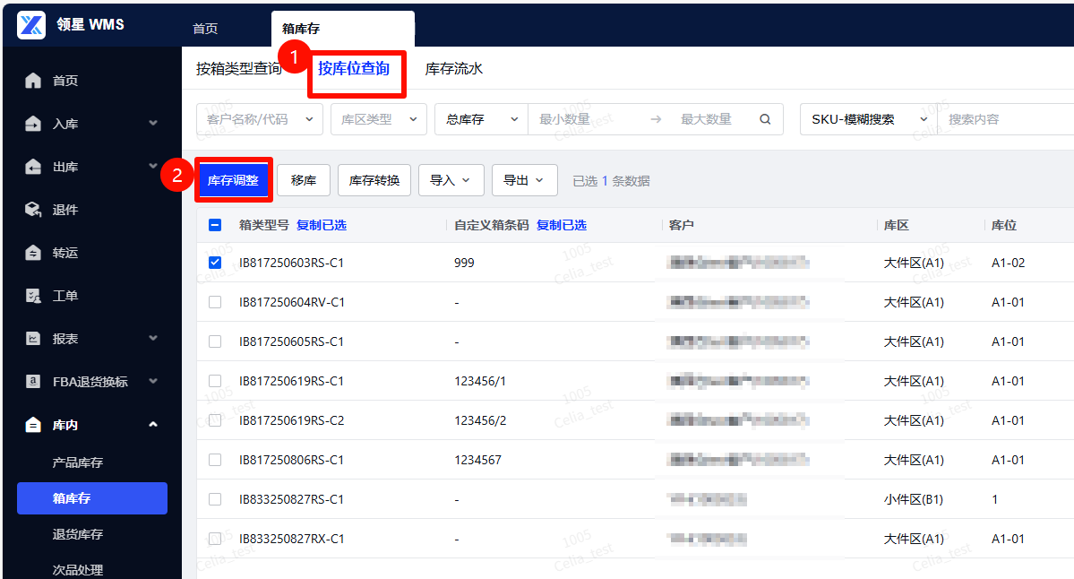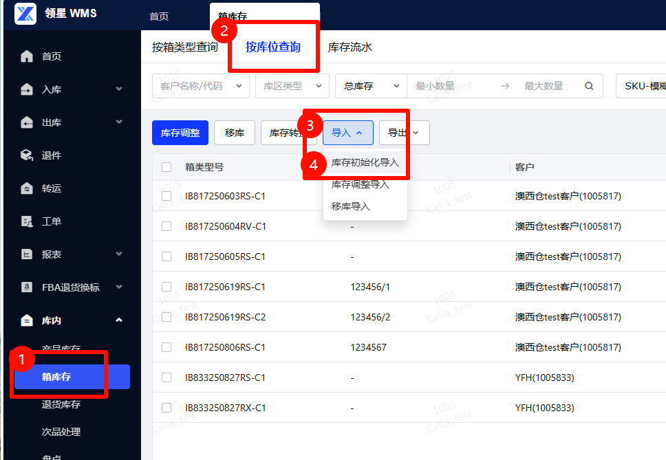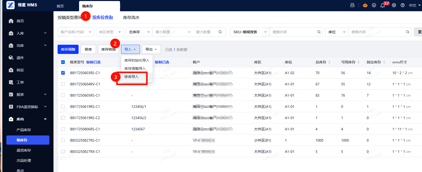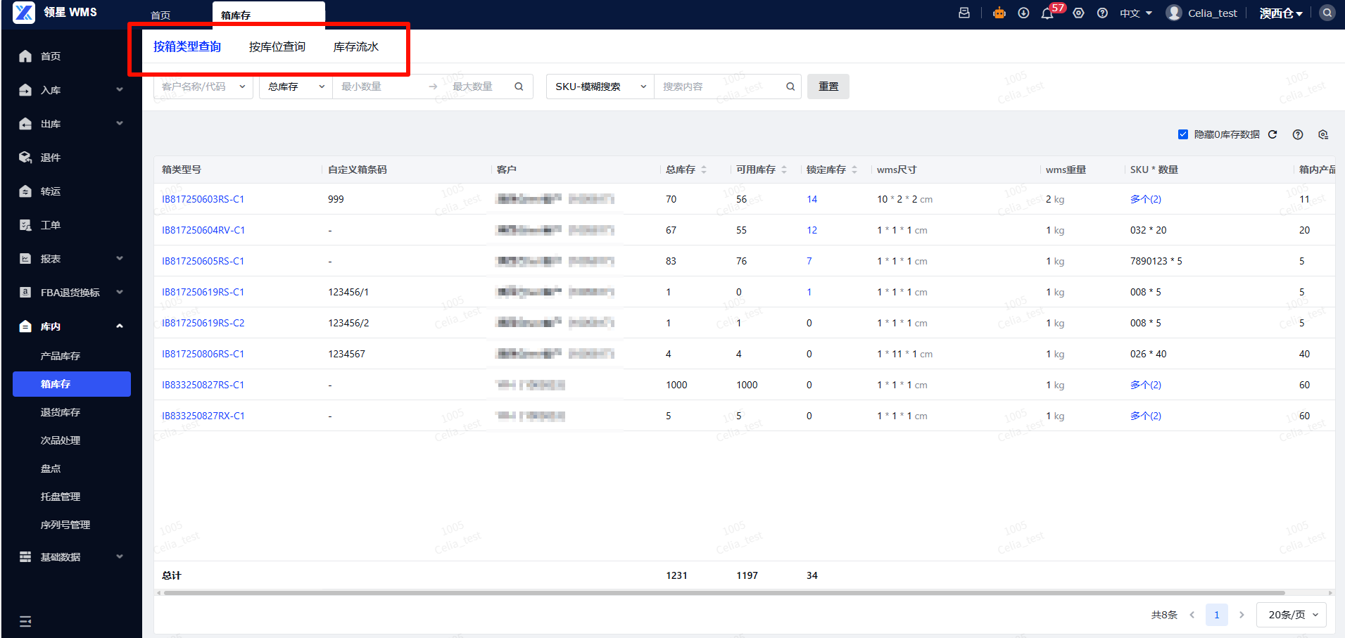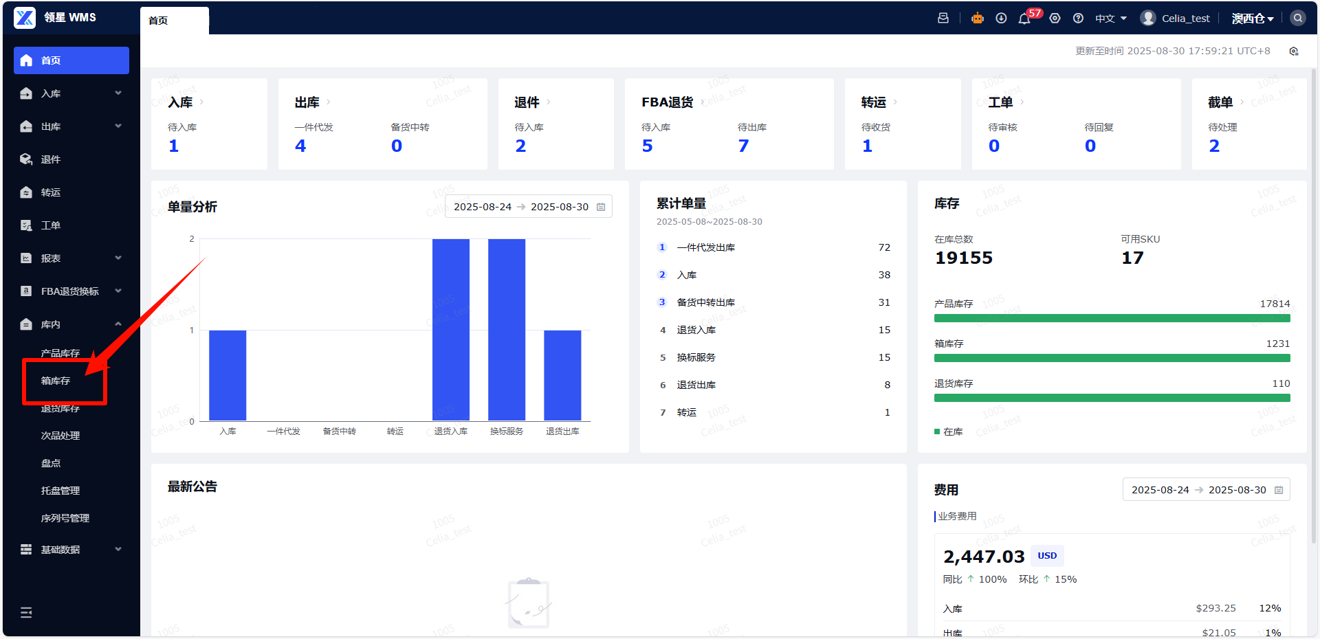 (1)进入WMS系统: 登录您的WMS仓库端,导航至库内-箱库存菜单。