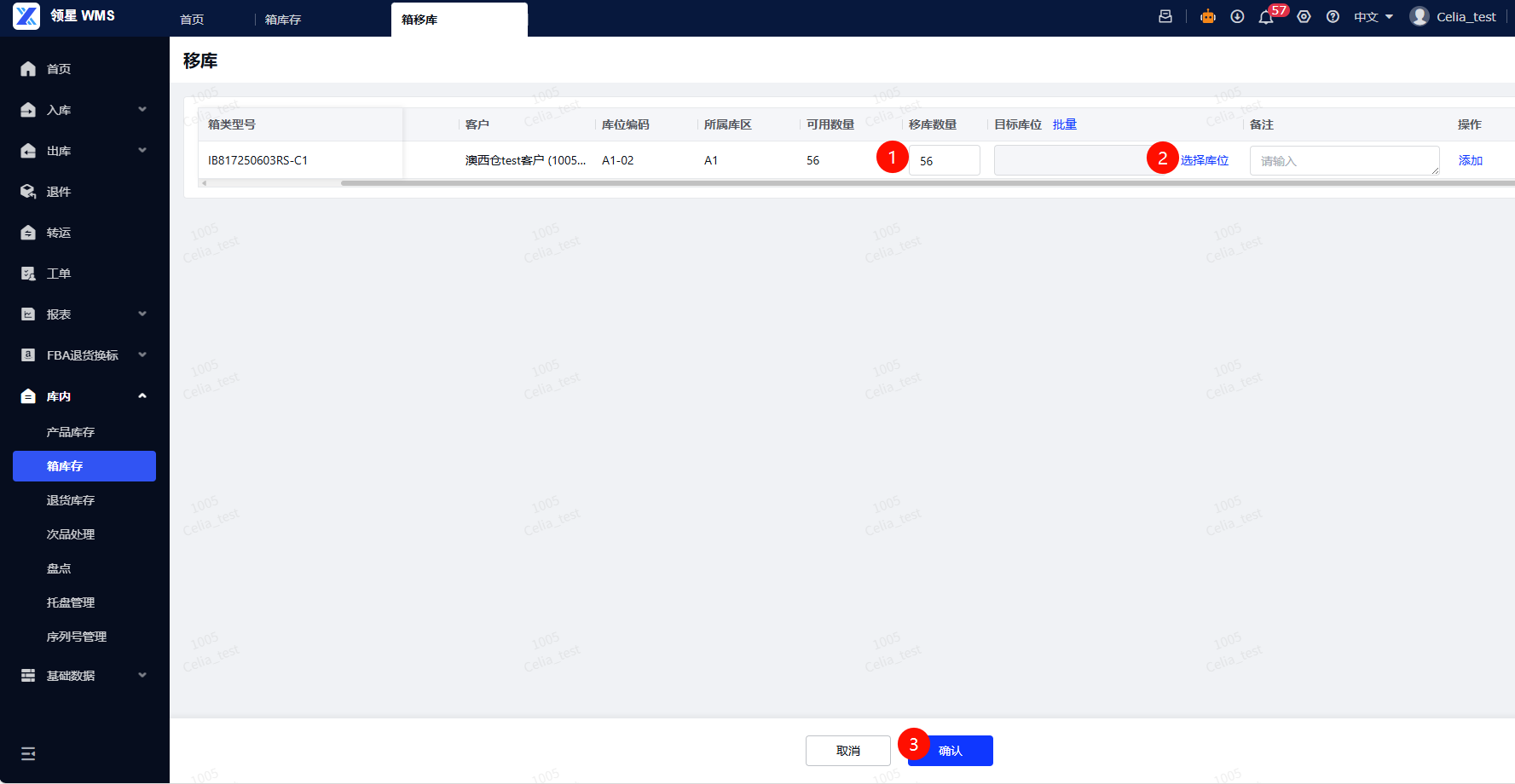 第二步,输入【移库数量】,选择目标库位,点击【确认】,即完成移库操作,系统会生成库位变动的流水记录。