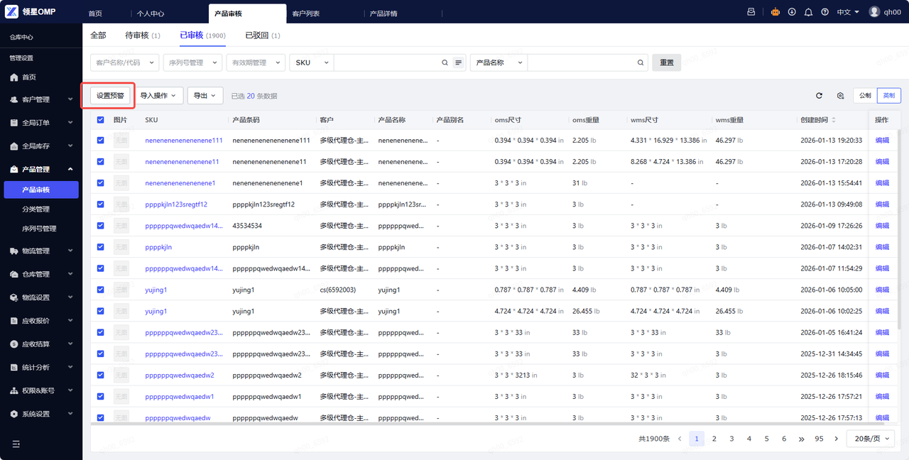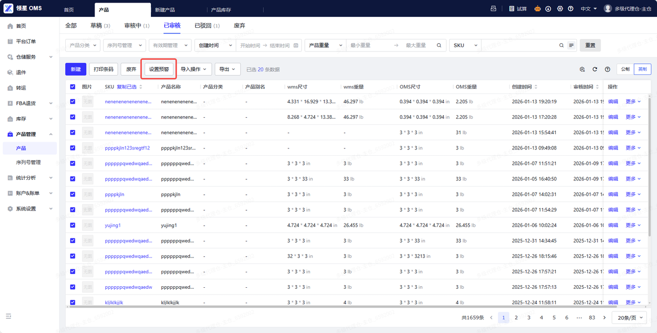 (b)批量设置:在已审核产品列表新增【设置预警】批量操作按钮。