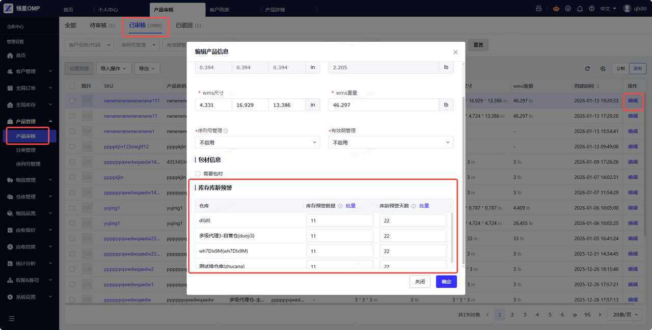 (a)单个设置:在已审核产品的操作弹窗中新增设置库存库龄预警的模块。