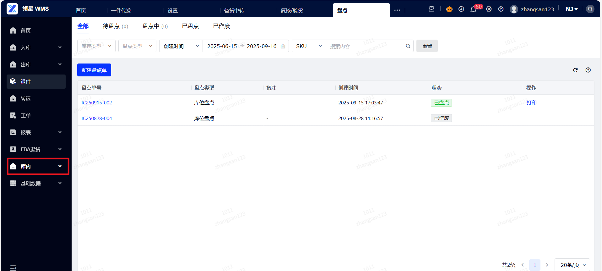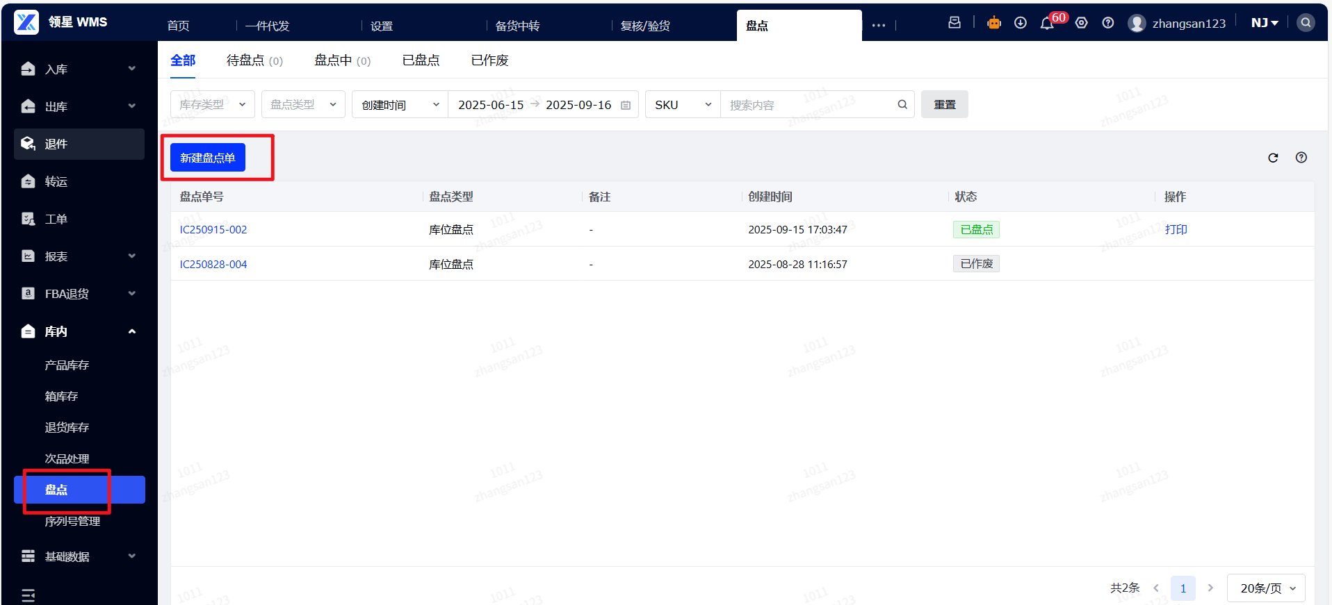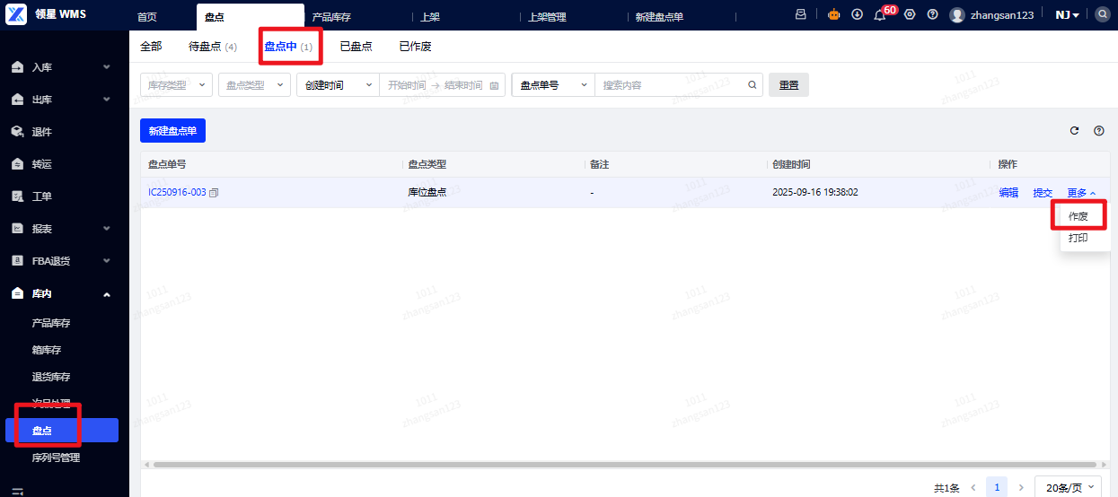 答案:目前仅有在盘点中状态下支持作废,作废后流转到已作废状态。可参考下图