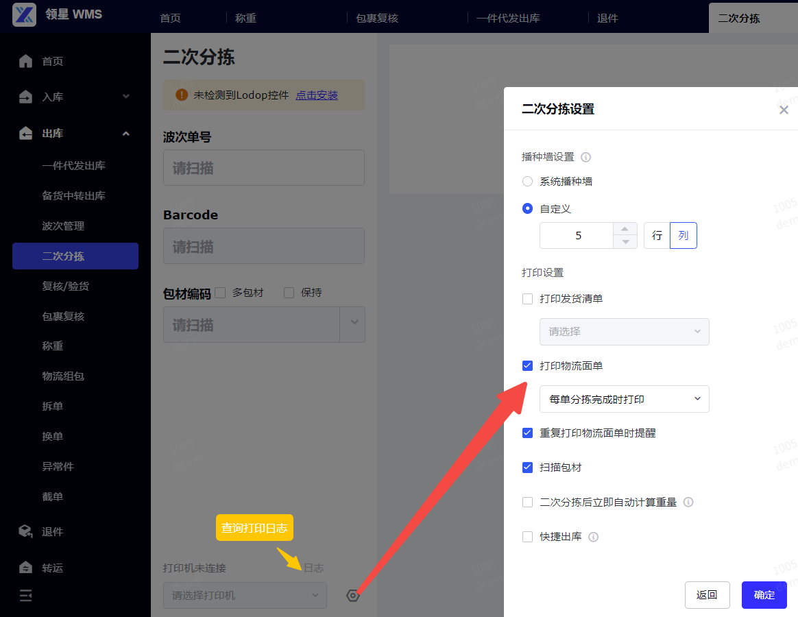 答案:在页面下方打印设置,进行配置自定义播种墙