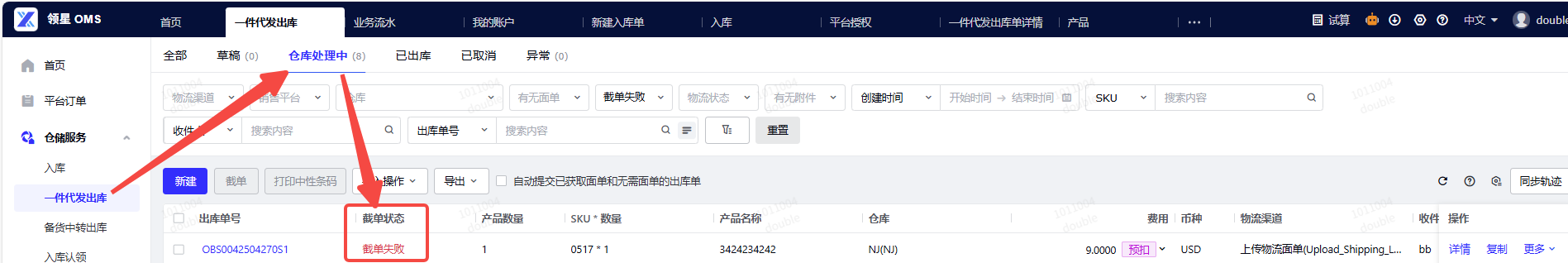 答案:OMS已发起截单的出库单会有橙色感叹号进行提示,仓库可进入截单模块进行操作。