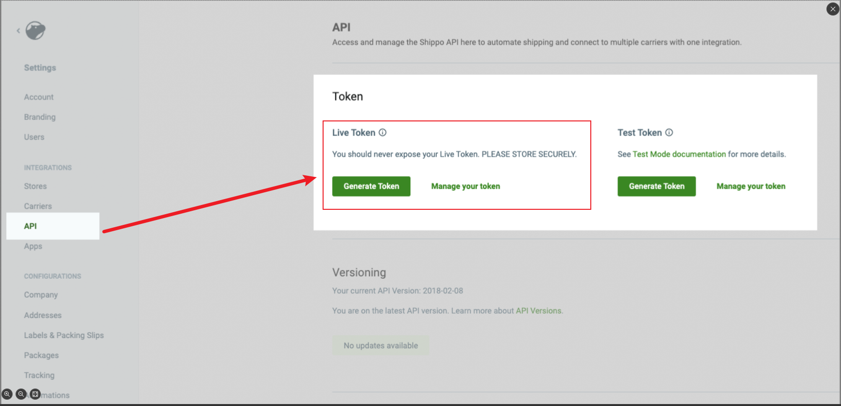 (3)填写API授权信息:账户名称自定义填写备注填写后可在物流商账号主页面看到Access Token需要在“路径:shippo - API - Token -Live Token - Generate Token”获取,然后把复制到的Live Token粘贴在此处,填写完后点击授权。