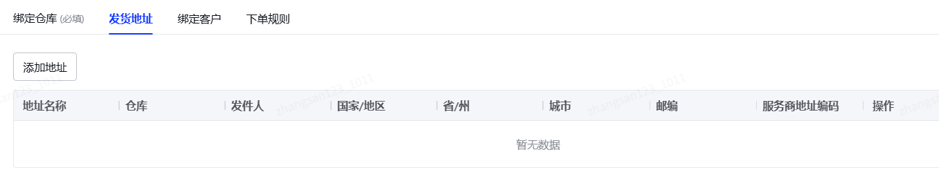- 渠道绑定之后,可以选择设置发货地址,如果您没有设置,那么会直接使用仓库地址作为您的打单发件地址