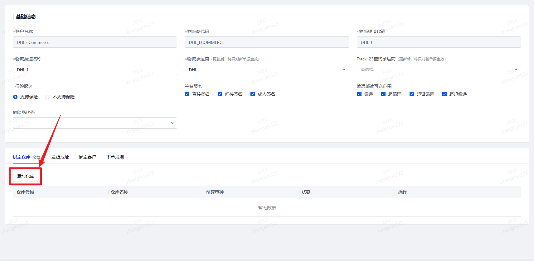 - 物流商账号 - 点击已创建的物流渠道名称 - 右上角编辑 - 添加仓库