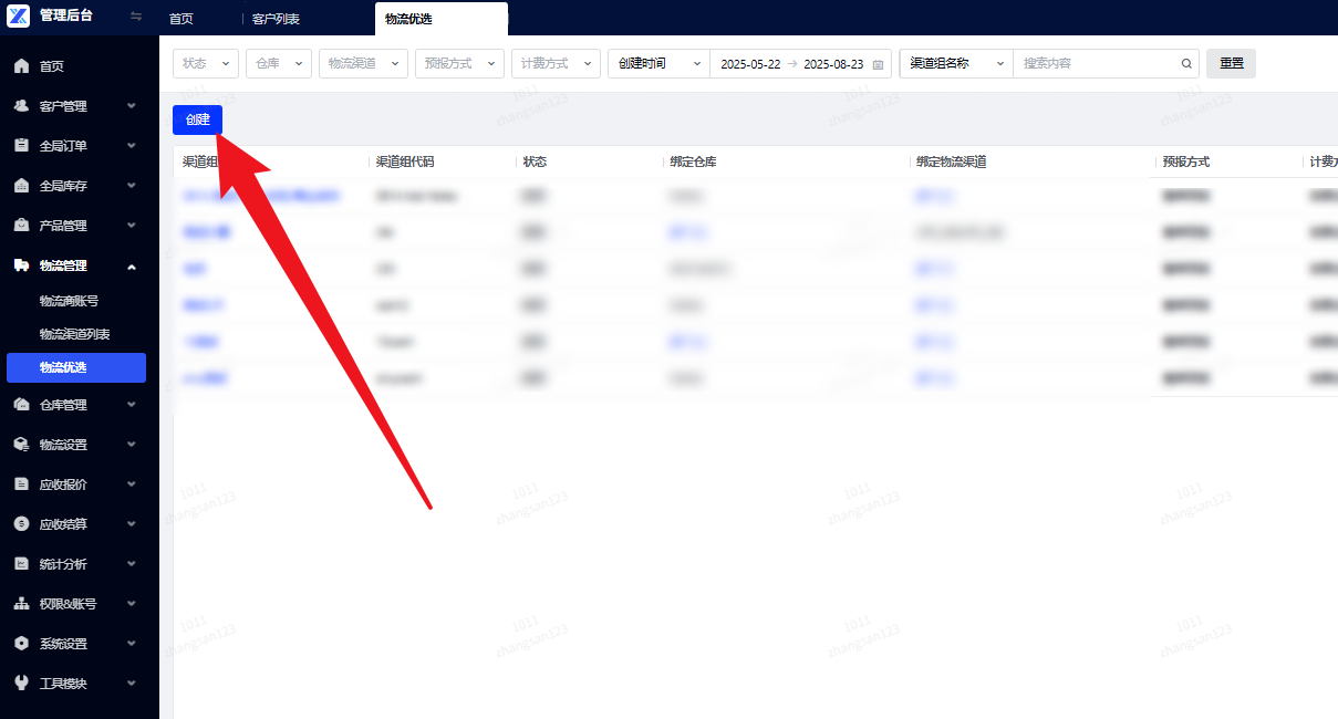 (1)设置位置:在OMP-物流管理-物流优选-创建