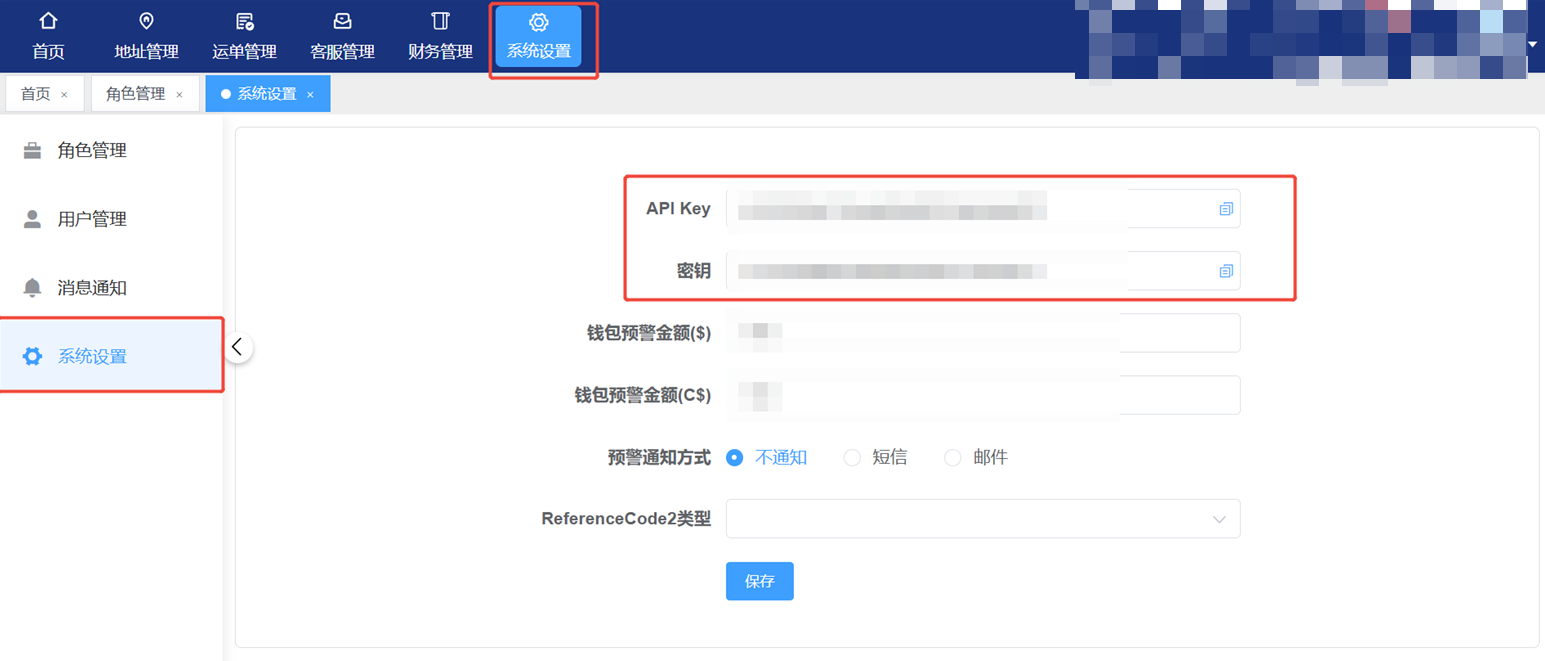 登录后,进入系统设置界面,找到并记录下API Key和密钥(App Secret)信息,这两个信息是后续在领星系统授权时的关键凭证。