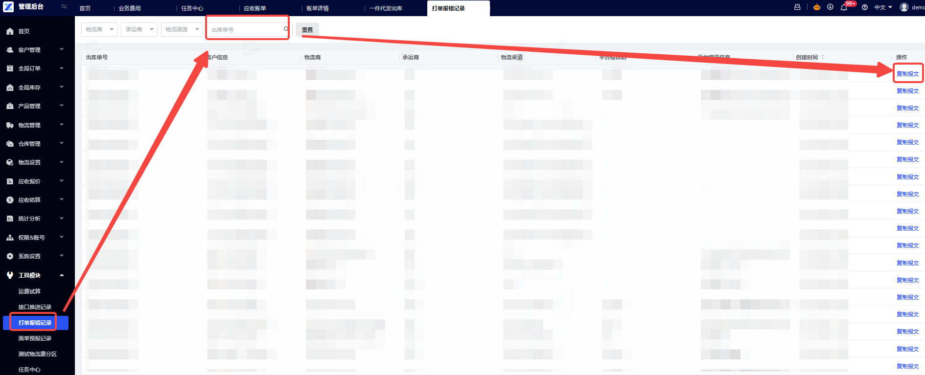 答案:这种开头的报错是打单系统返回的异常,可在管理后台—工具模块—打单报错记录—复制报错单据报文,发给打单系统咨询。