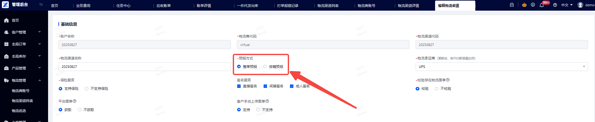 答案:看下使用的物流渠道的预报方式是否可以开启【按箱预报】,开启后,每个箱子都会出一个面单;按箱预报仅适用于备货中转出库(按箱出库)以及FBA退货出库(按换标装箱出库)。