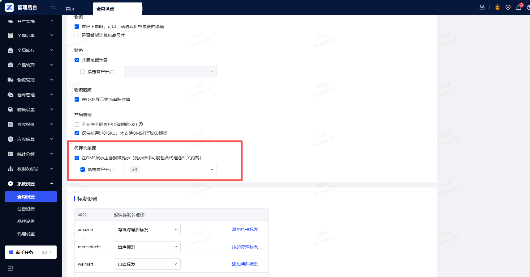 (1)进入OMP系统: 登录您的OMP管理后台,导航至全局设置菜单;(2)勾选【在OMS展示主仓报错提示】;(3)指定客户开启,支持多选