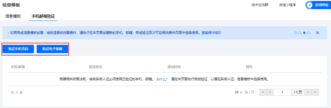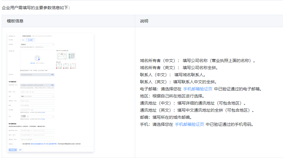 填写您的域名信息模板。具体操作请参见信息模板管理。