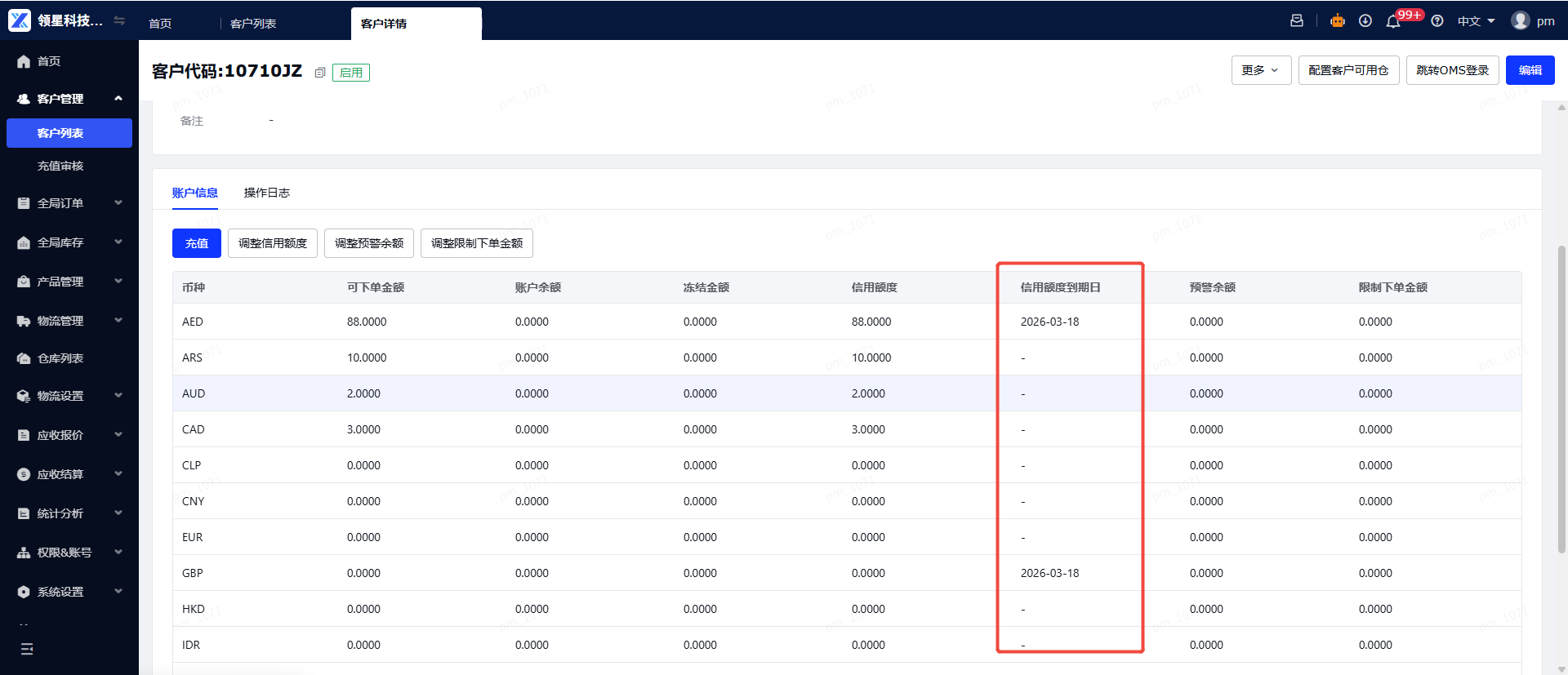(4)在OMS端查看额度到期日