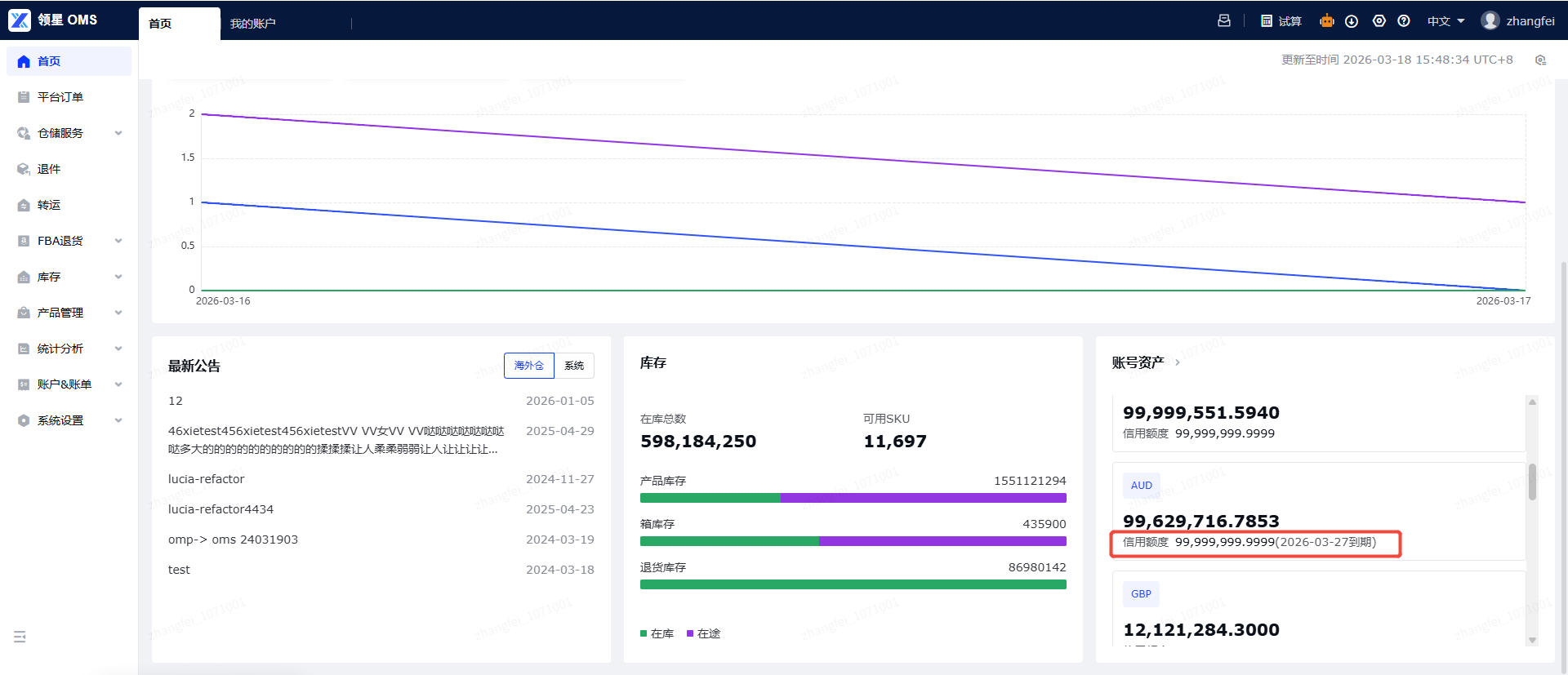 操作路径: OMS → 我的账户/首页