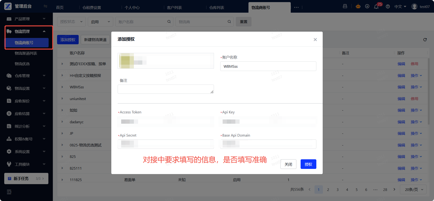 此时需要检查OMP-物流管理-物流商授权,查看打单系统授权信息填写是否准确。若OMP-工具模块-打单报错记录中无法复制报文,请提供具体单据号向客服同事后台获取具体详细报文。