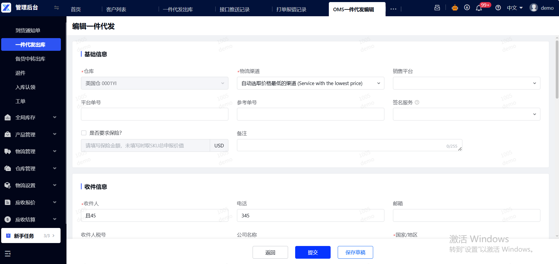 可编辑订单:支持编辑订单的物流渠道、收件人信息等字段。