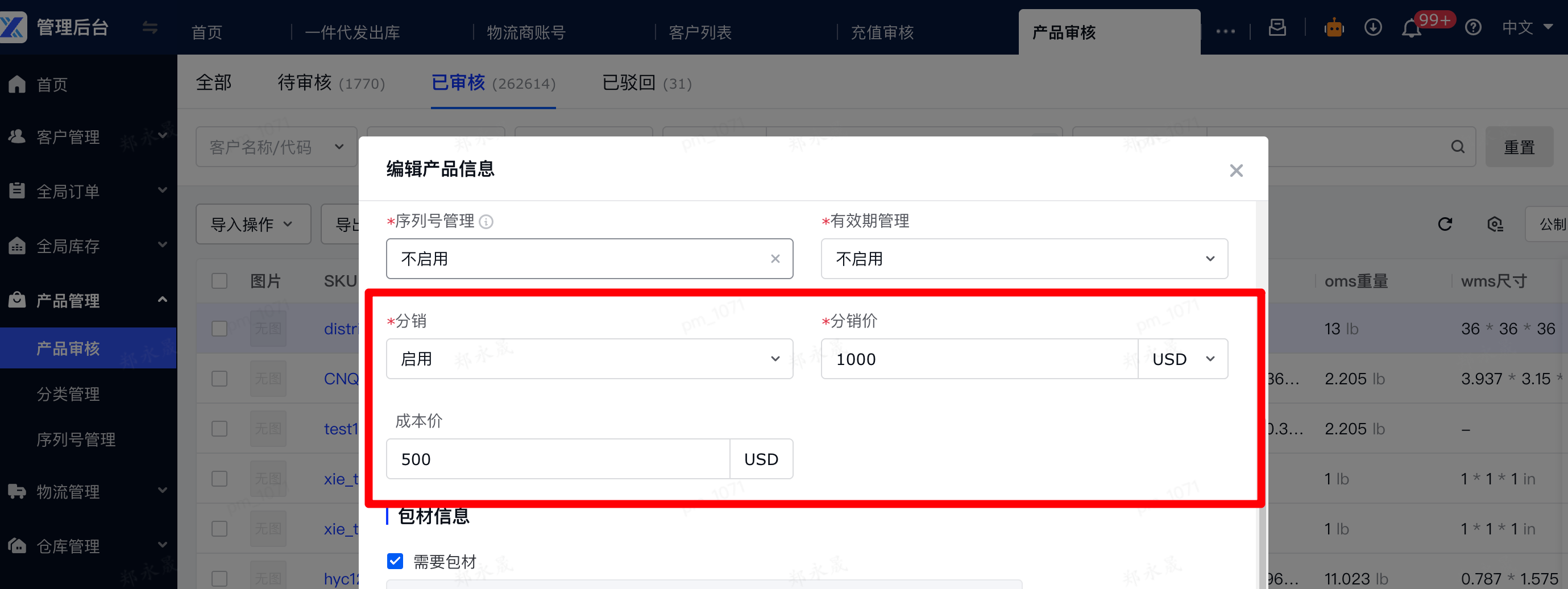 2、管理后台端,设置哪些产品可以分销,以及分销价格