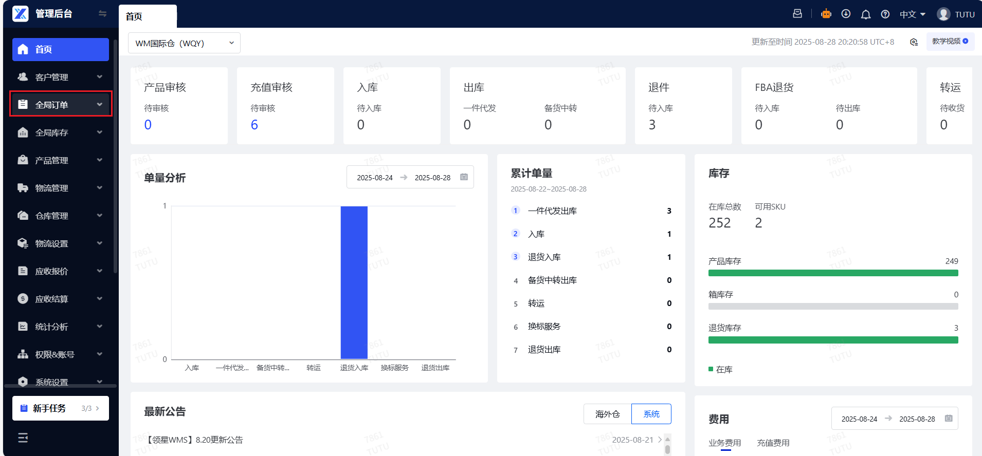 (1)进入OMP端口:登录您的OMP管理后台,导航至全局订单 。