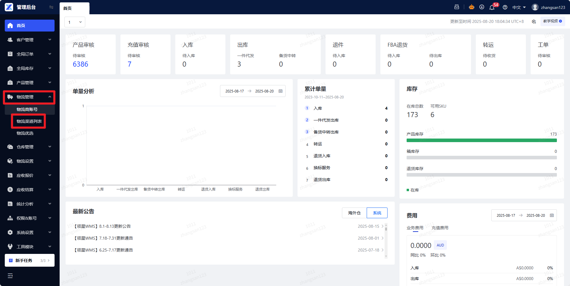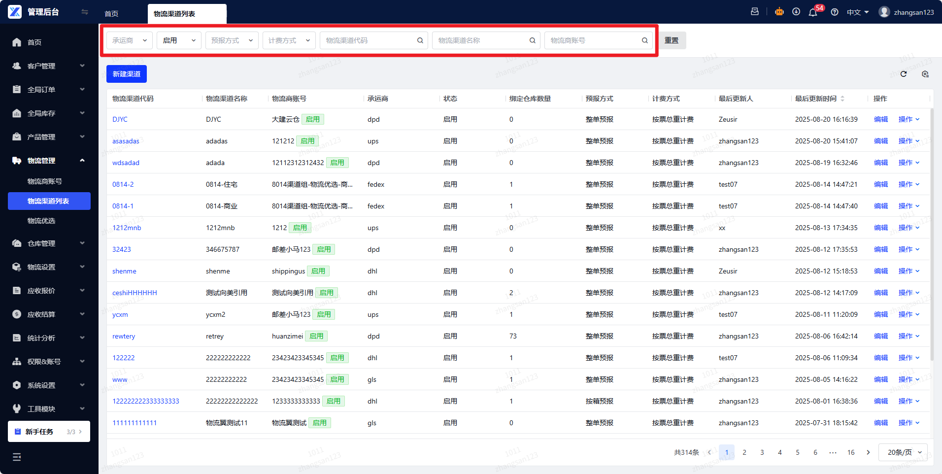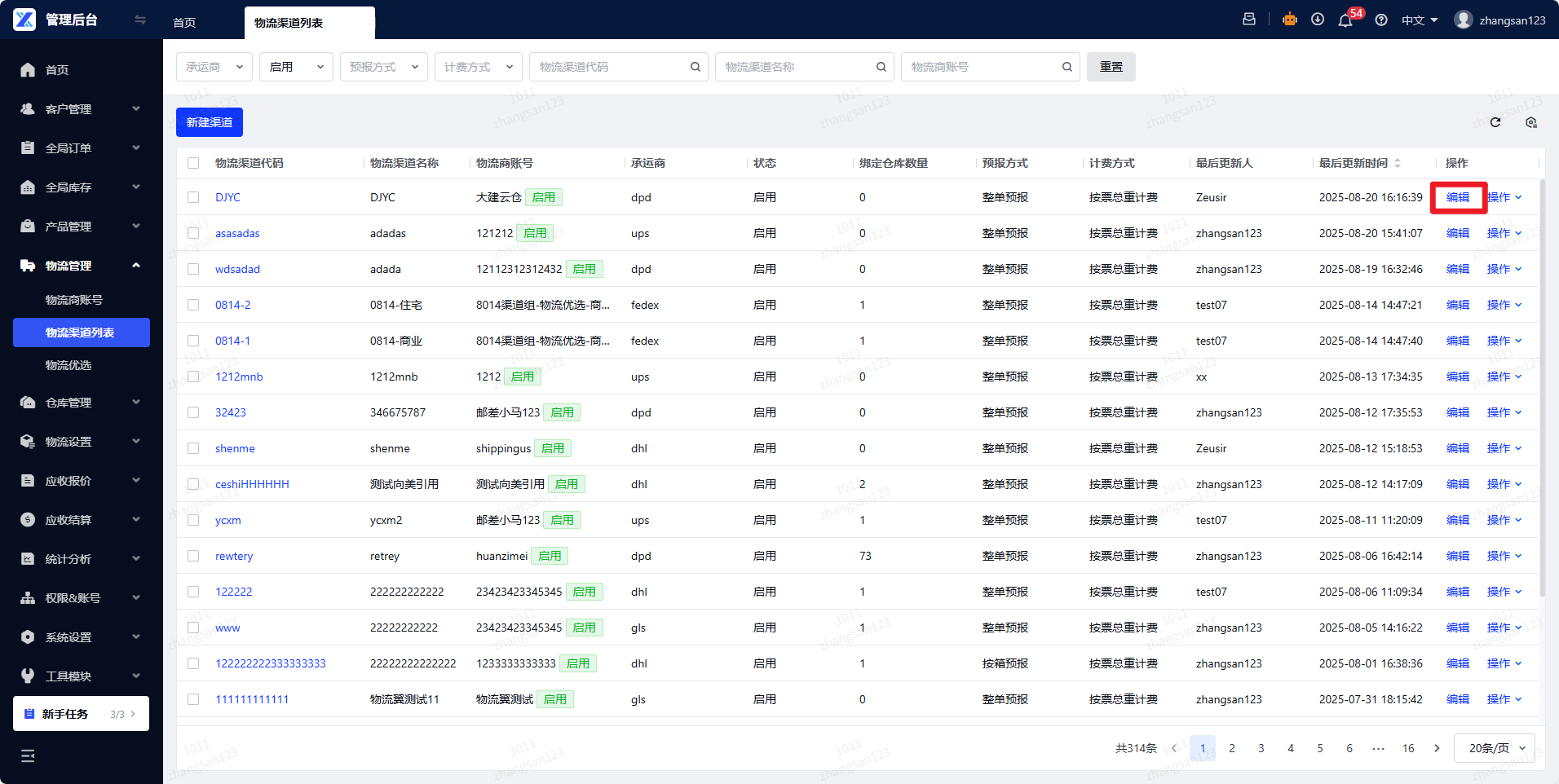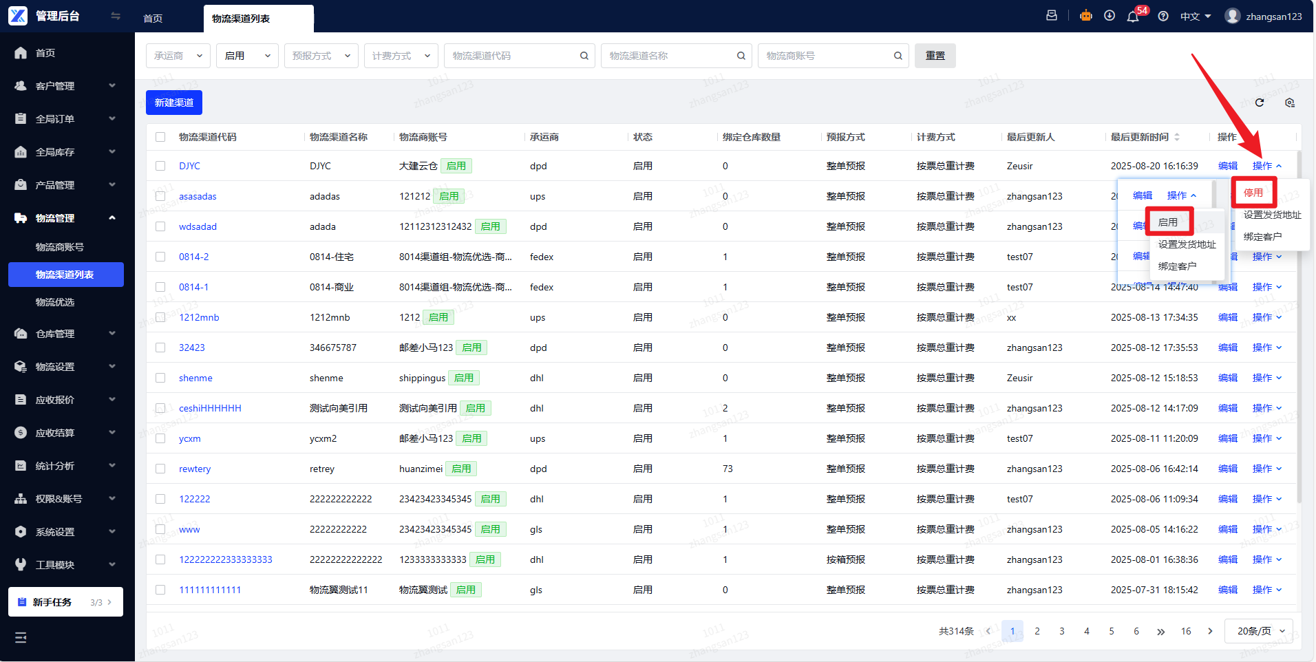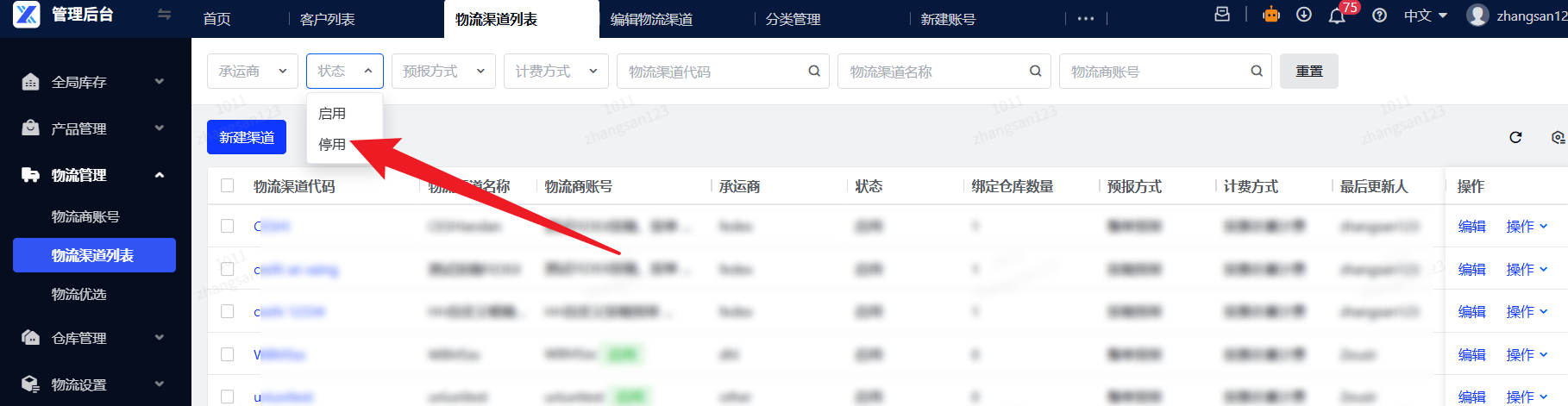 (1)进入OMP系统: 登录您的OMP管理后台,导航至物流管理菜单,再导航至物流渠道列表菜单。
