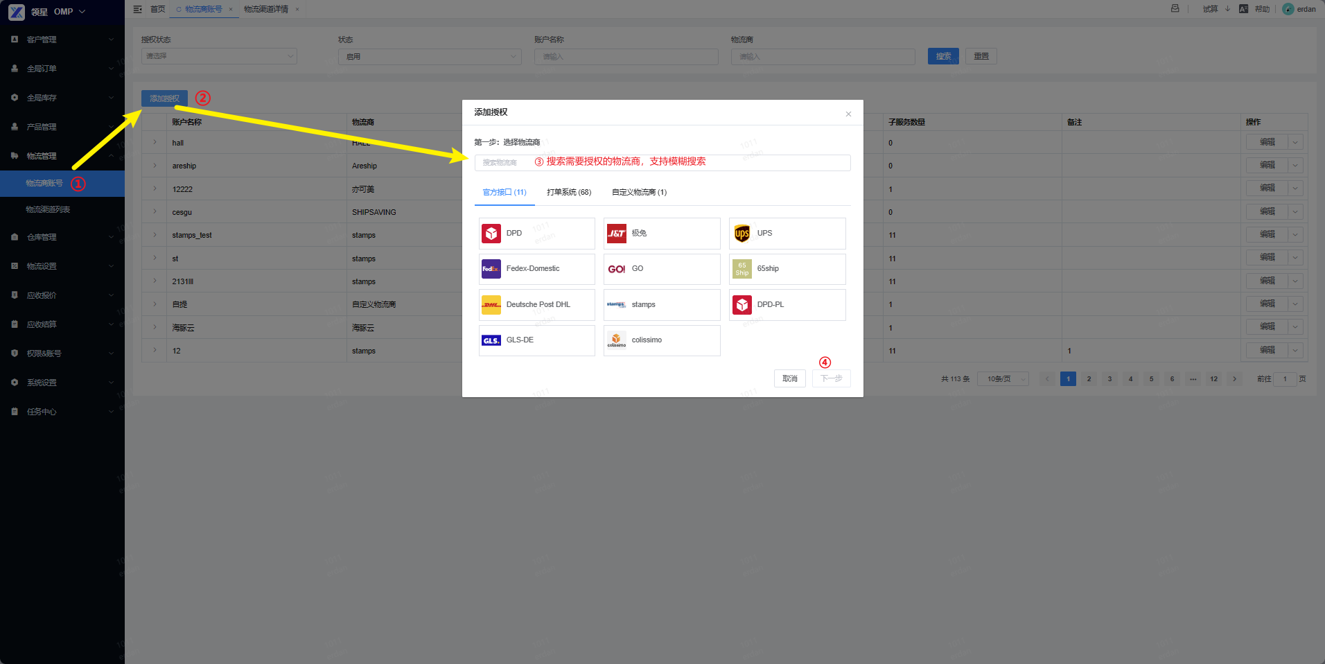 物流商授权可参考使用OMP添加物流商账号 | 领星WMS帮助中心