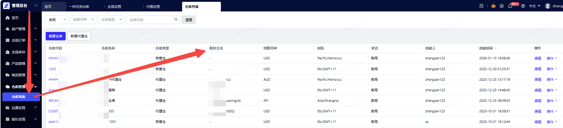 “仓库代码”及“仓库结算币种”一旦提交均无法修改,请留意。仓库代码不要求与实体仓一致,可以在代理设置中手动与主仓仓库进行配对。