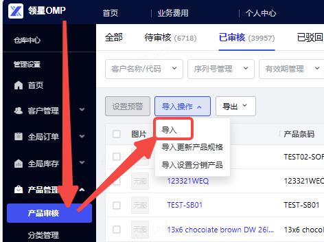 (仓库协助客户创建)管理后台 - 产品管理 - 产品审核 - 导入操作 - 导入