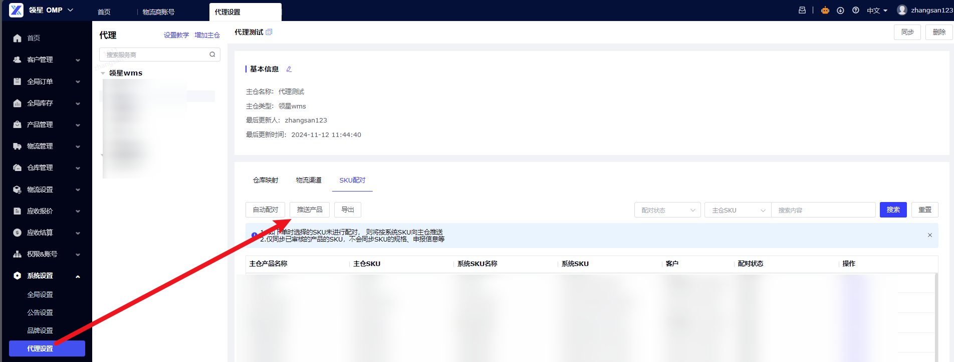 【路径】:领星OMP - 全局设置 - 代理设置 - SKU配对 - 推送产品