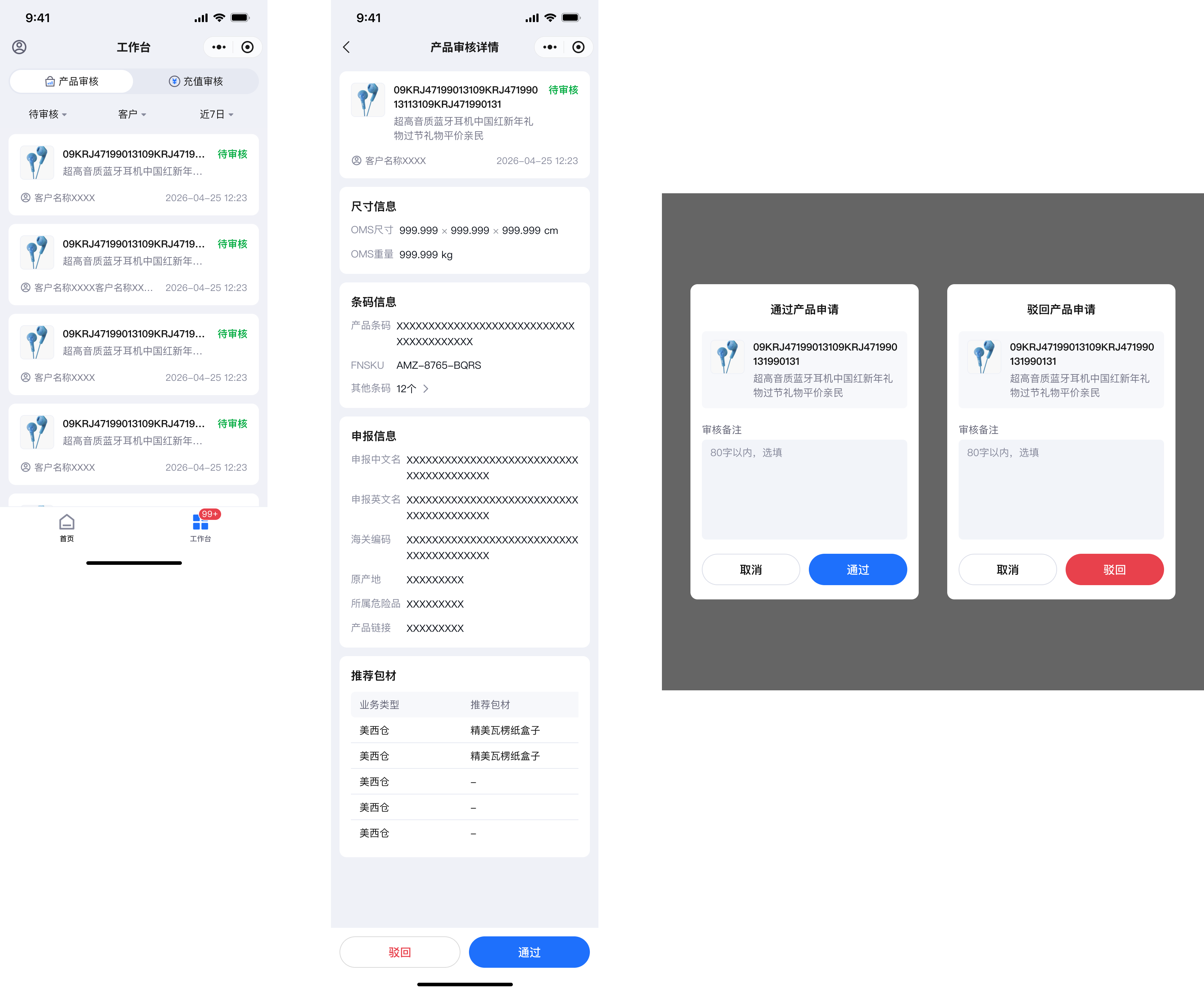 (6)工作台 - 产品审核。如登录账号有审核权限,工作台会集成待审核的审核信息并以小红点提示
