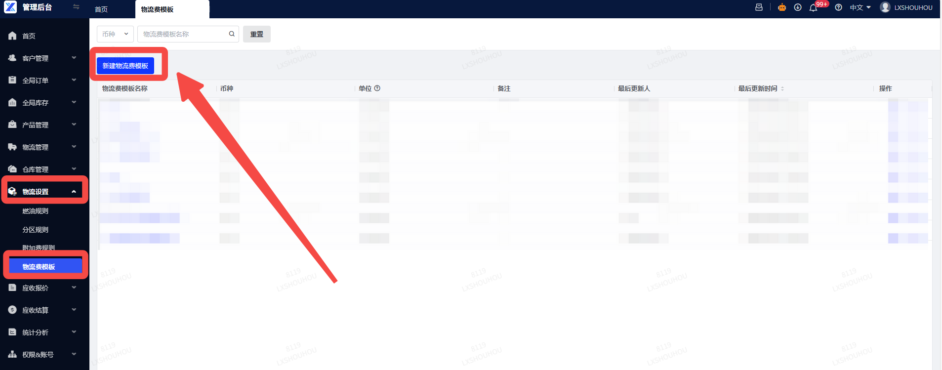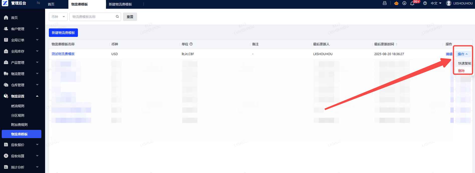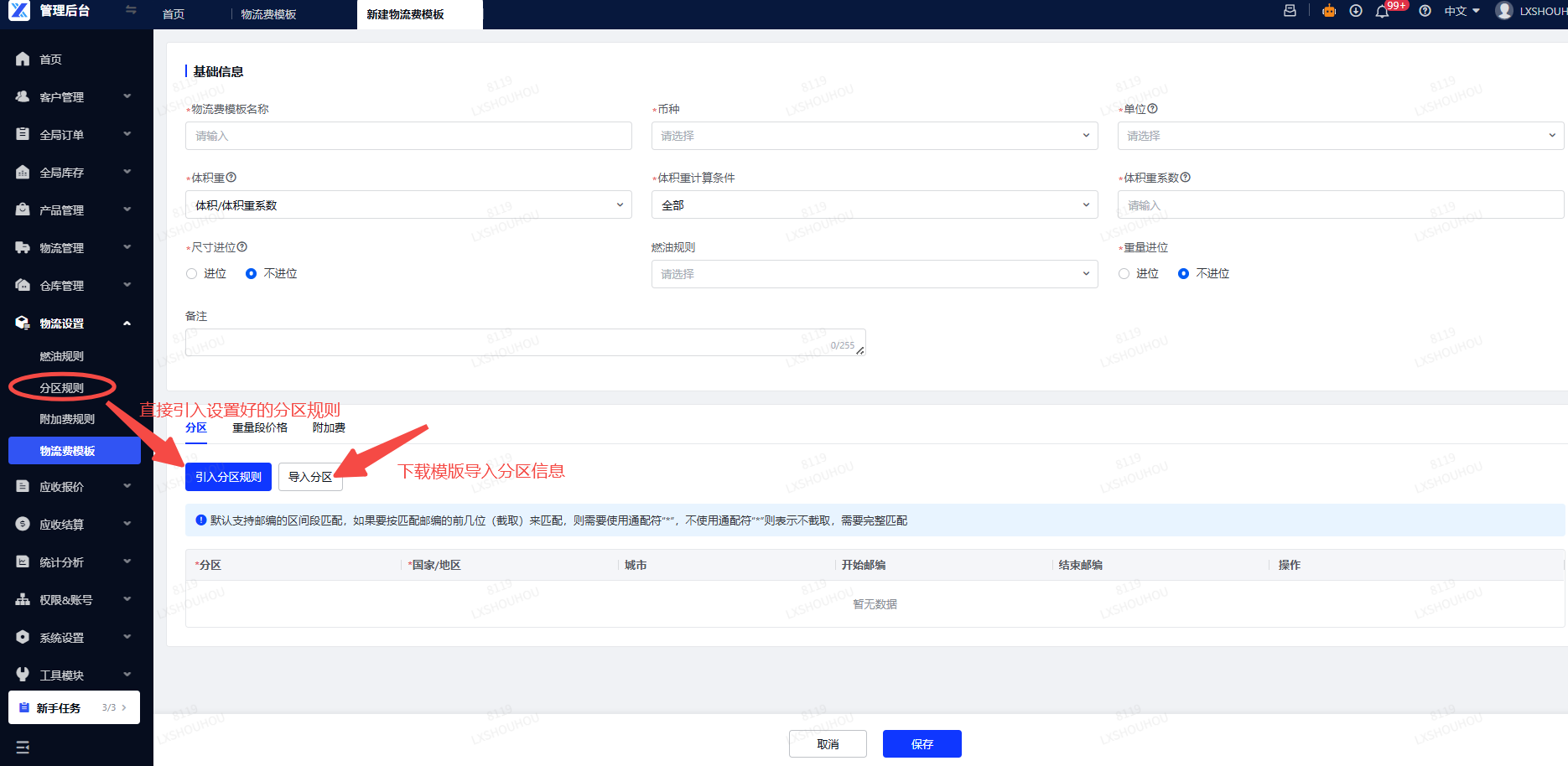 作用:对物流费的规则进行管理,以便在具体的物流费设置时能直接引用模版。