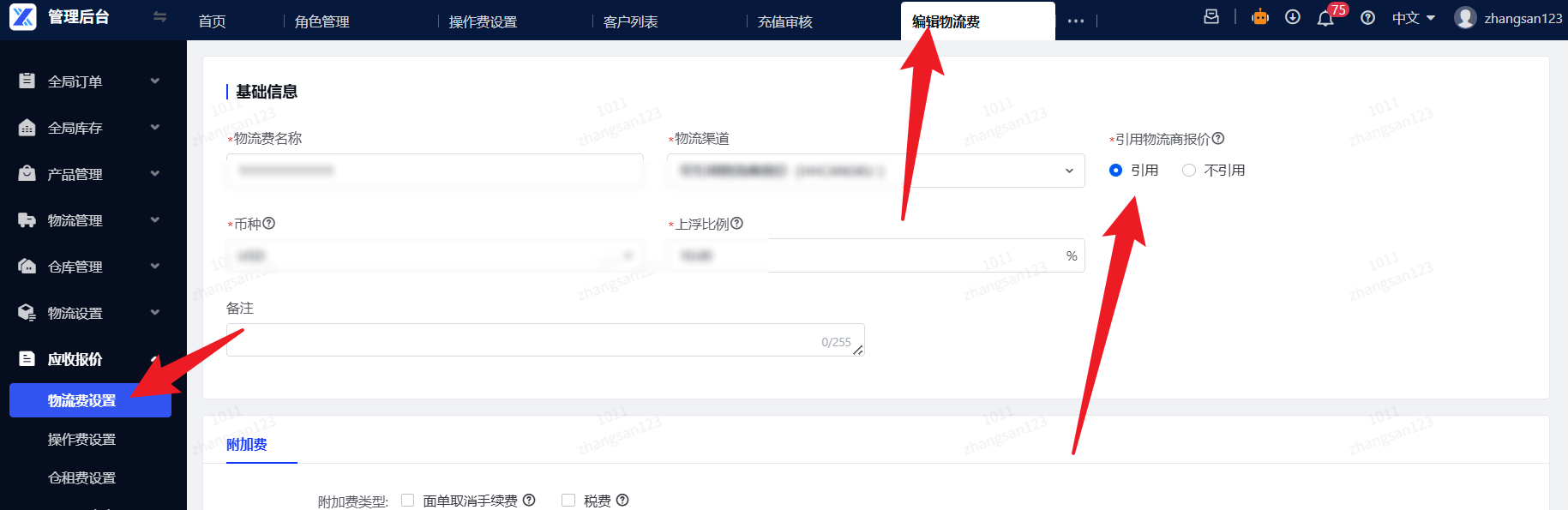 (1)注意事项:物流费模板不是必须创建的,直接创建物流费也可以绑定报价方案
