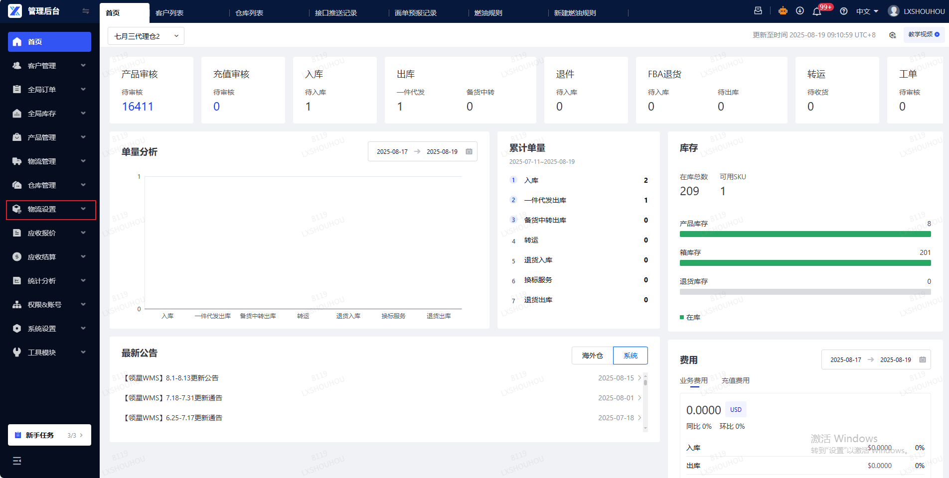 (1)进入OMP系统:登录OMP管理后台,导航至物流设置菜单。