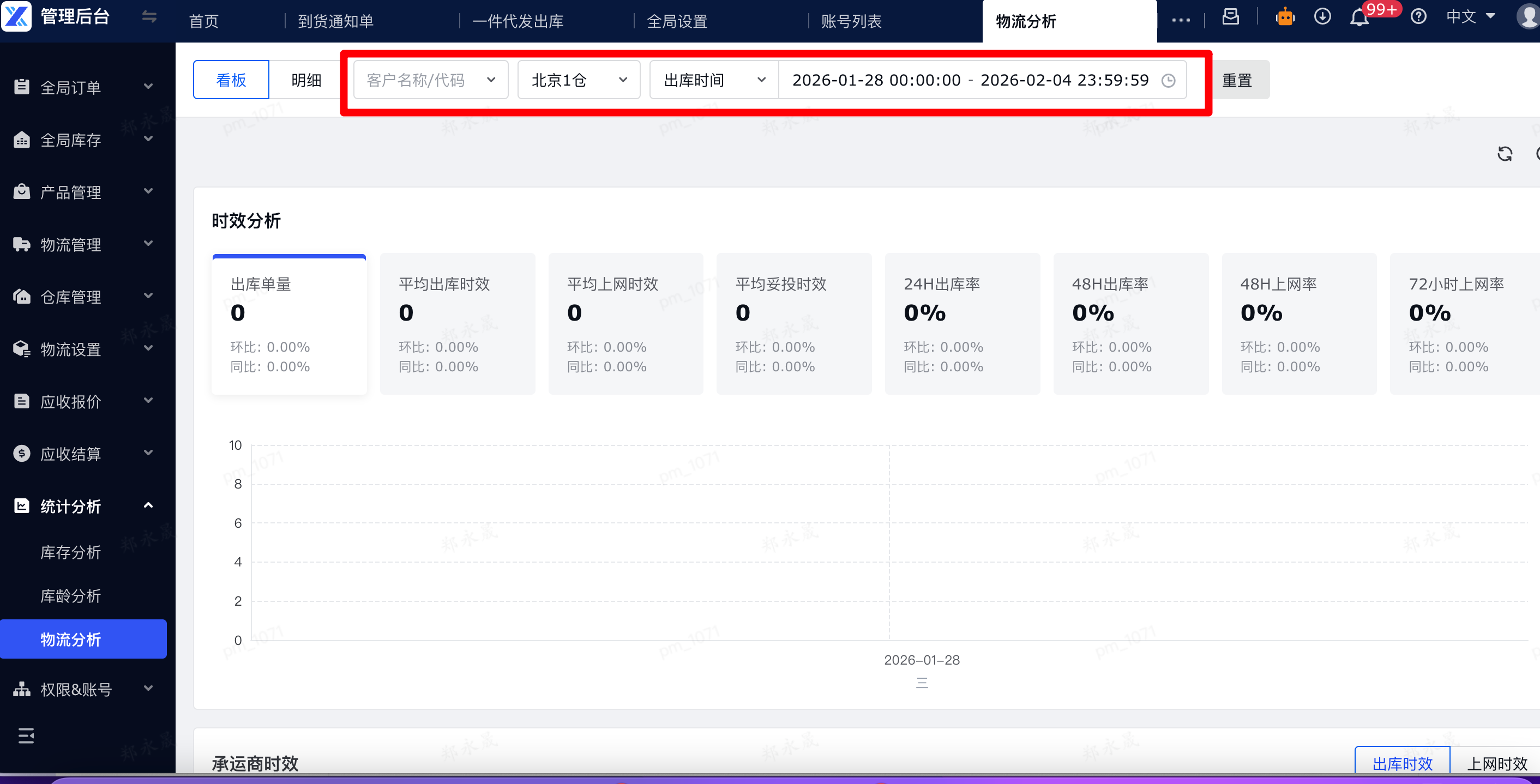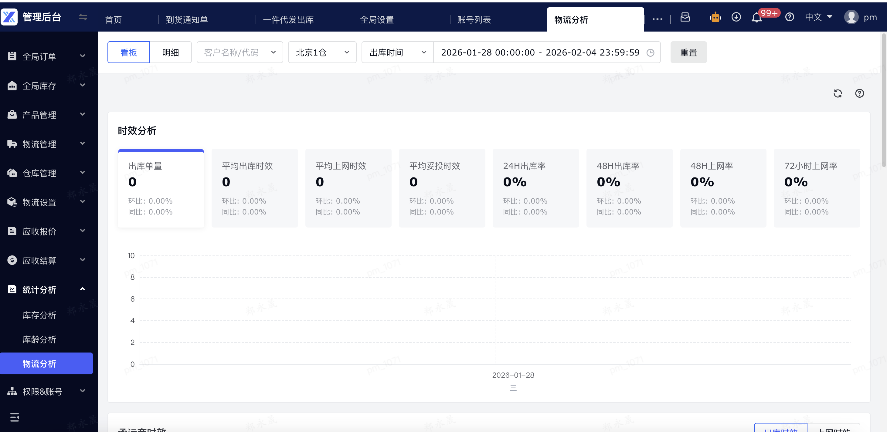 定义:物流分析是一款支持按仓库、客户、自定义时间维度查看库存明细的工具,能帮助用户从多维度监控近期一件代发出库单的出库时效、上网时效、妥投时效的情况