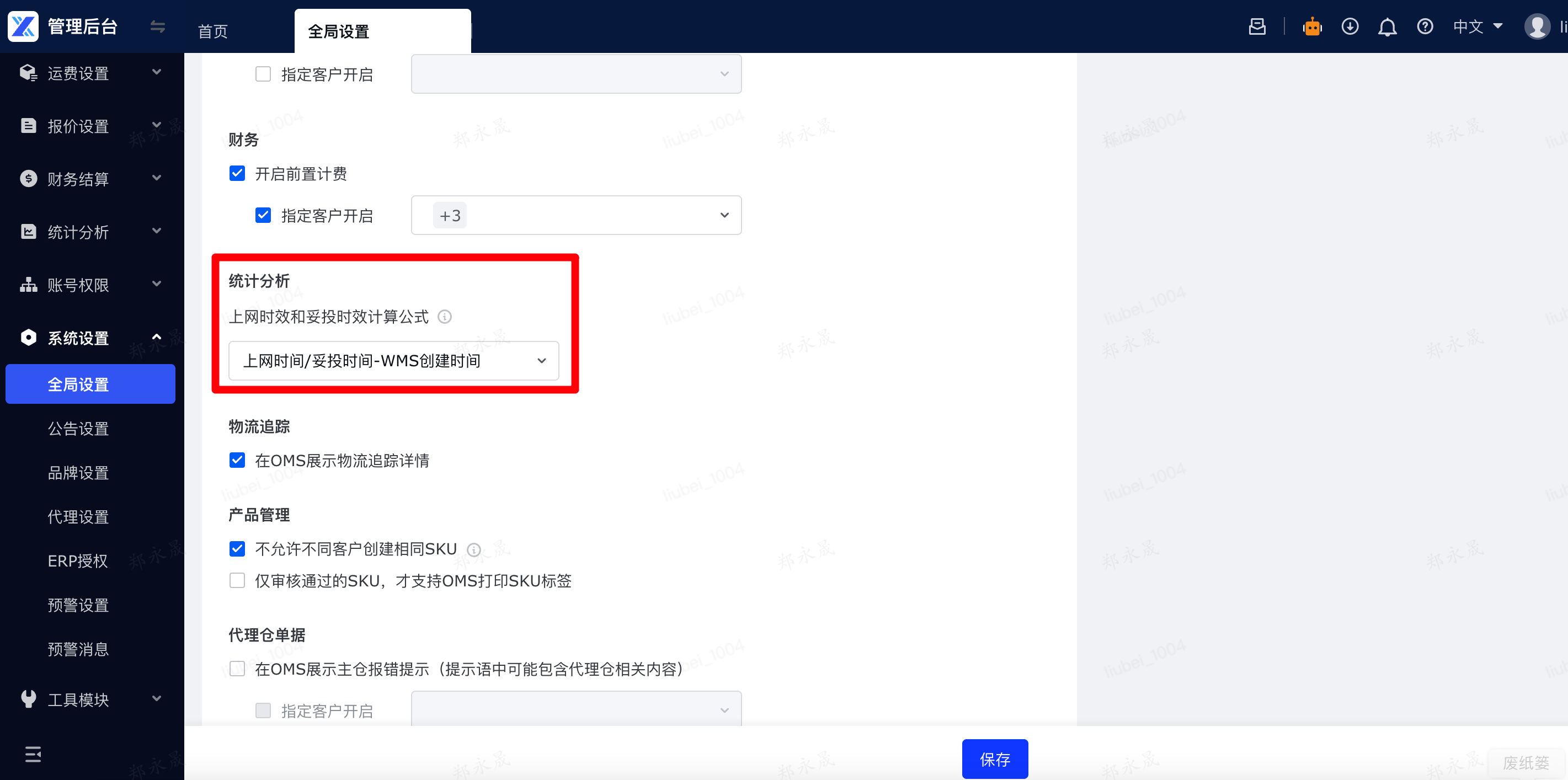 (4)上网和妥投时效计算公式:可前往管理后台-系统设置-全局设置中更换时效计算公式,更新后的时效计算仅对新单生效
